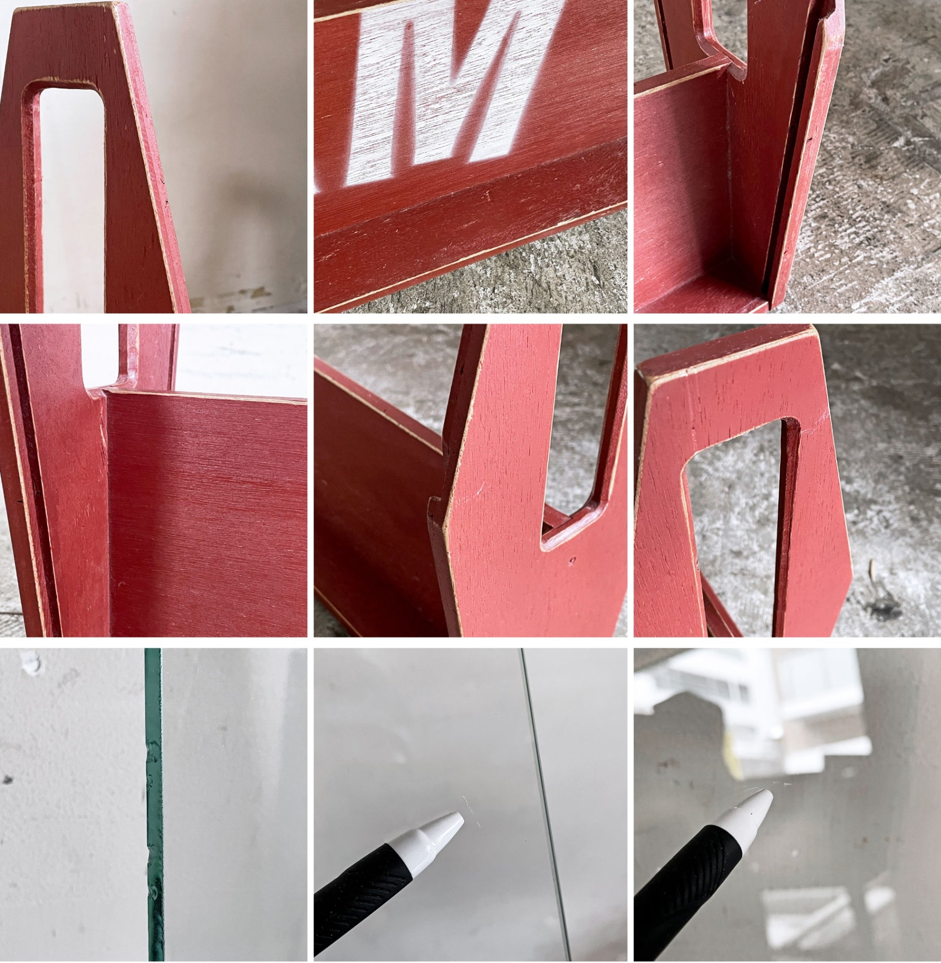 使用に伴い、傷や擦れ、打痕、縁や表面のペイントロス、ステンシルの擦れが複数箇所見受けられますが、風合いとしてお楽しみ頂ける範囲のダメージかと思われます。