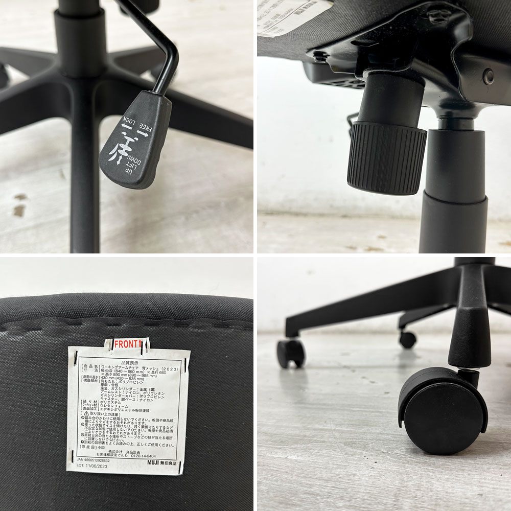 無印良品 MUJI ワーキングアームチェア 背メッシュ デスクチェア オフィスチェア 学習椅子 キャスター ブラック ●