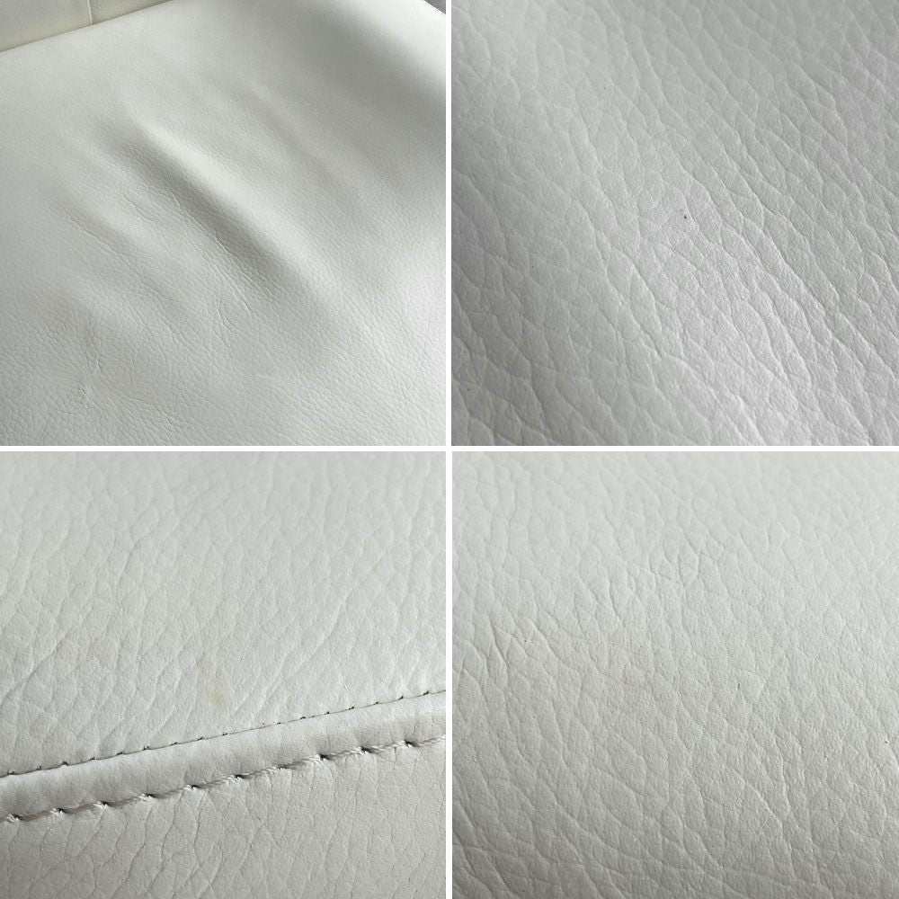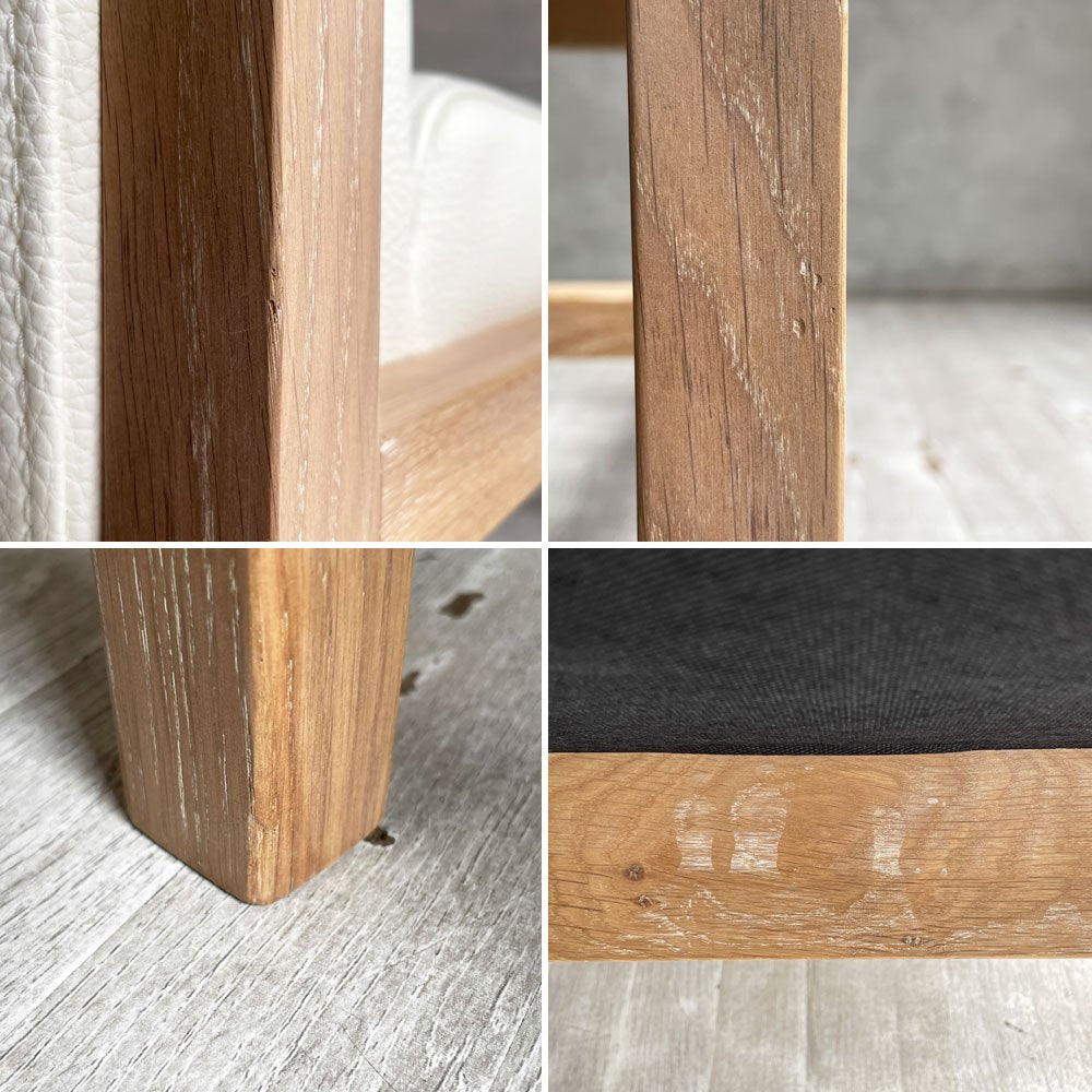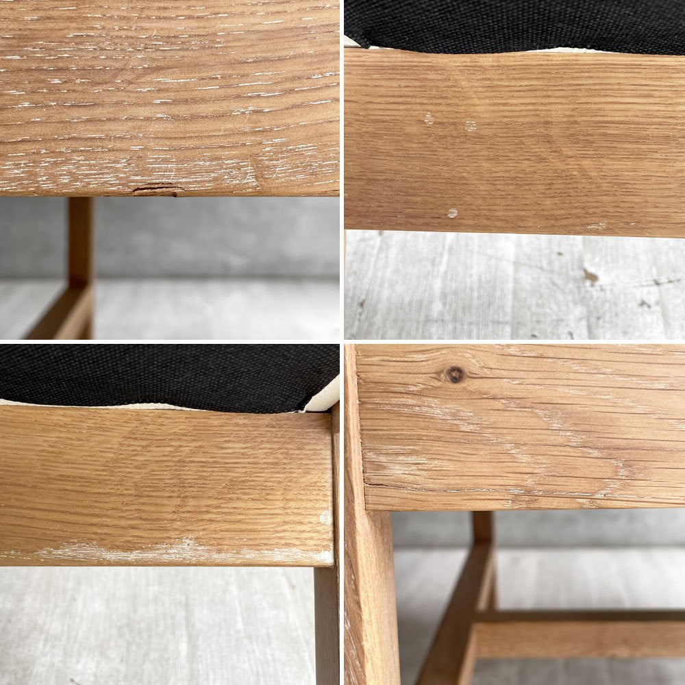 使用に伴い、フレームに細かな擦れや打痕、線傷が見受けられるほか、座面裏フレーム部分に塗装のムラがございます。また、レザーシートの表面にクリーニングで落としきれない染み汚れが見受けられますが大きく美観を損なう様なダメージではございません。その他、ガタつきやグラつきなど使用に問題となるダメージは無く、中古品としてこれからも安心してお使い頂けるコンディションを保っています。