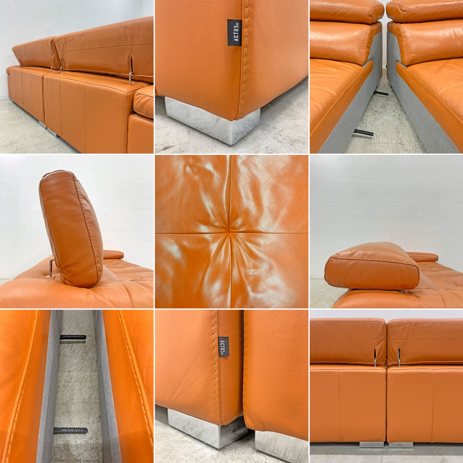 アクタス ACTUS 総本革張り アルト ALTO レザー カウチ ソファ シェーズロング + 片アーム 2人掛け セット 参考価格約25万円 five by five ファイブ・バイ・ファイブ 〓