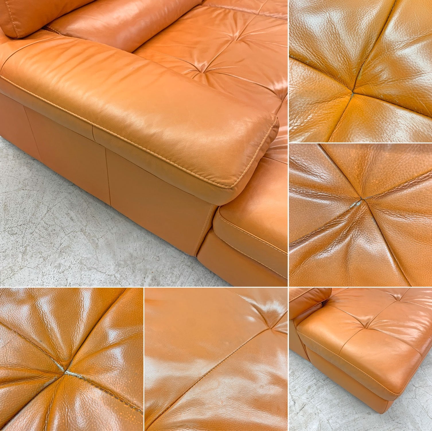 ※サイドに日焼け有り 一見では解らない程度の若干の汚れや一部付着汚れ、擦れや小傷、向かって左側やシート面に多少ヤケによる変色、十字のキルティング部分にペイントロスや一部裂け等が見受けられます。その他、画像の通り大きく目立ったダメージや不具合は御座いません。程度の表現には幾分主観を含む為、よく画像や記述をご確認下さいませ。また販売対象はソファのみとなり、イメージサンプルとして使用した他の家具、植物や小物等は付属致しませんので、予めご承知おき下さいませ。