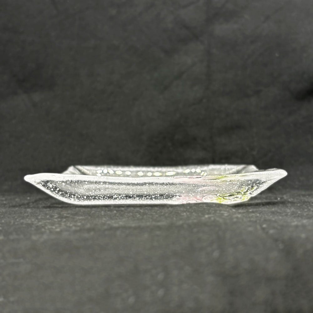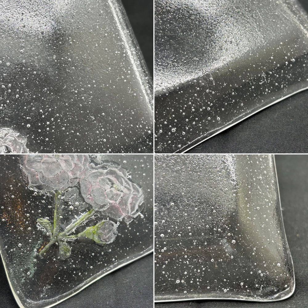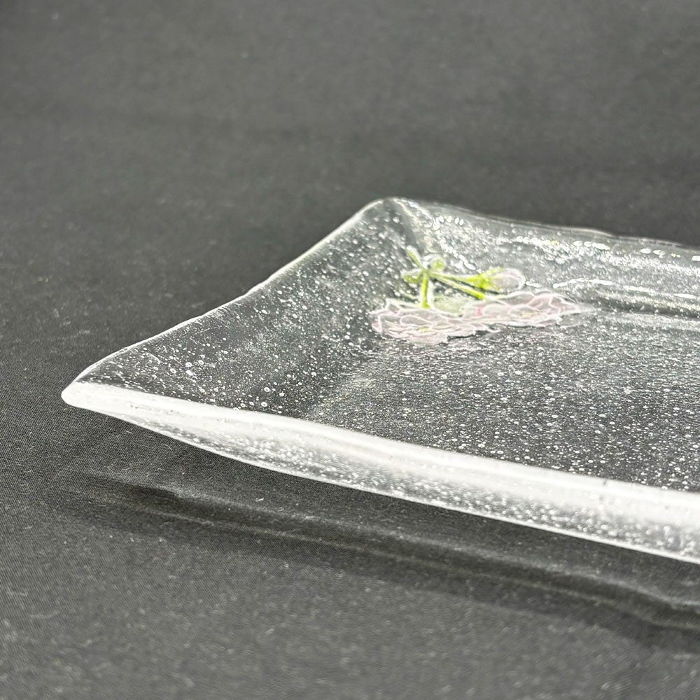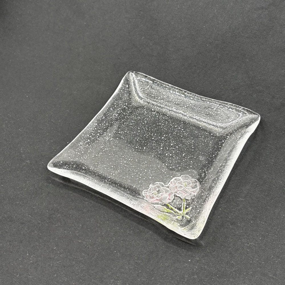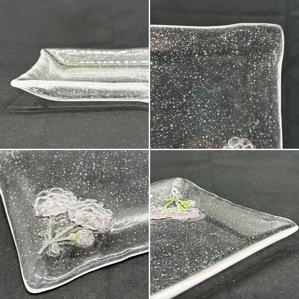 岡田多恵 ガラス 角皿 スクエアプレート パートドヴェール 花 14cm 現代作家 C ●