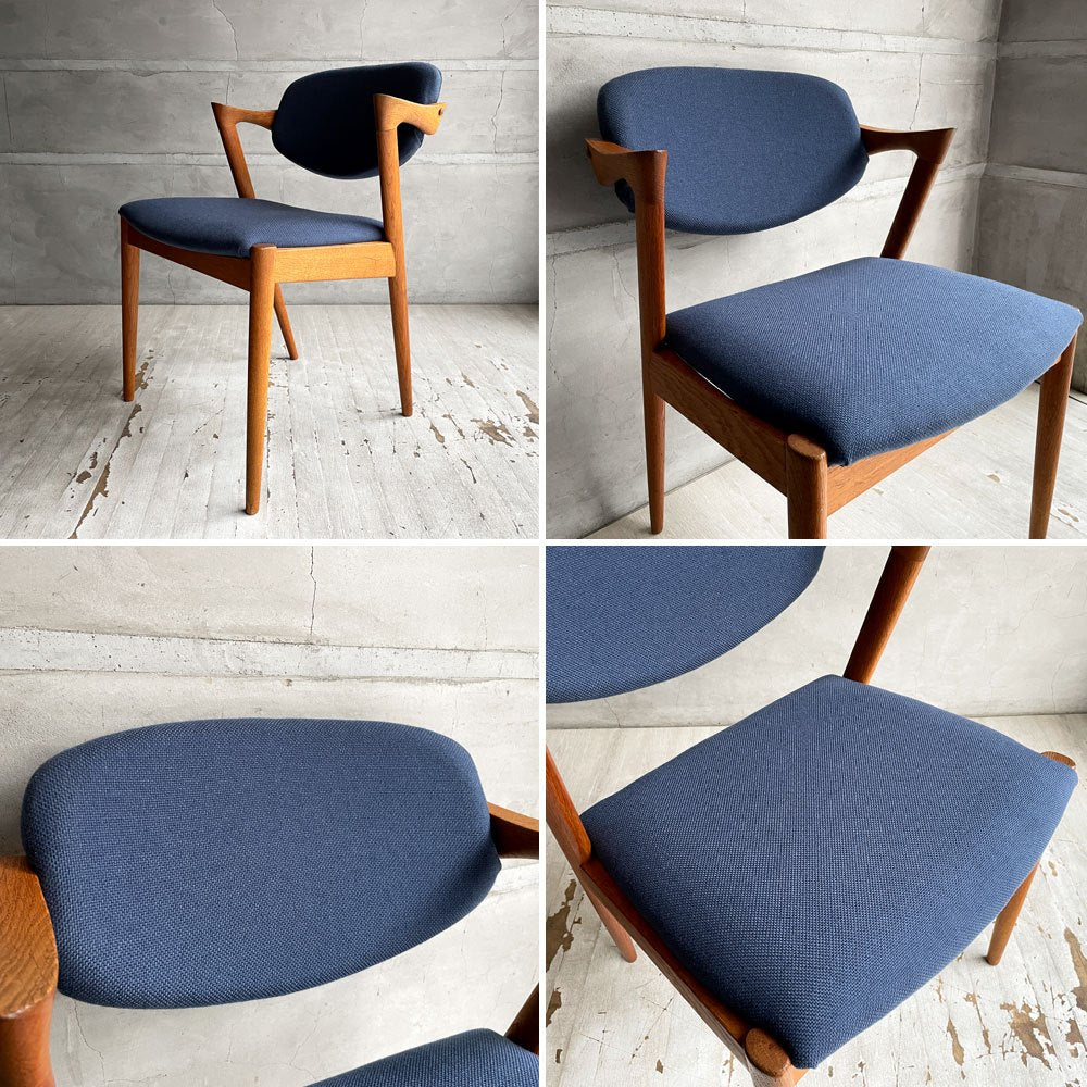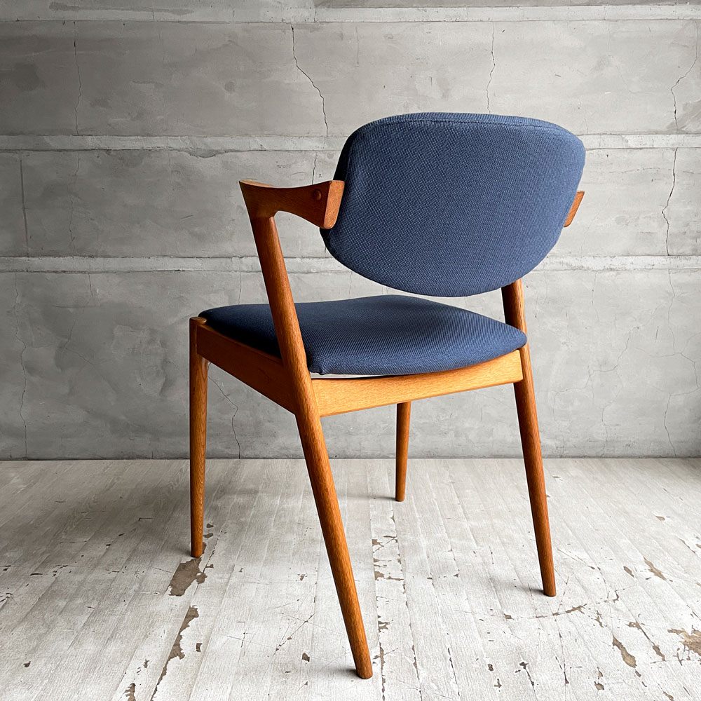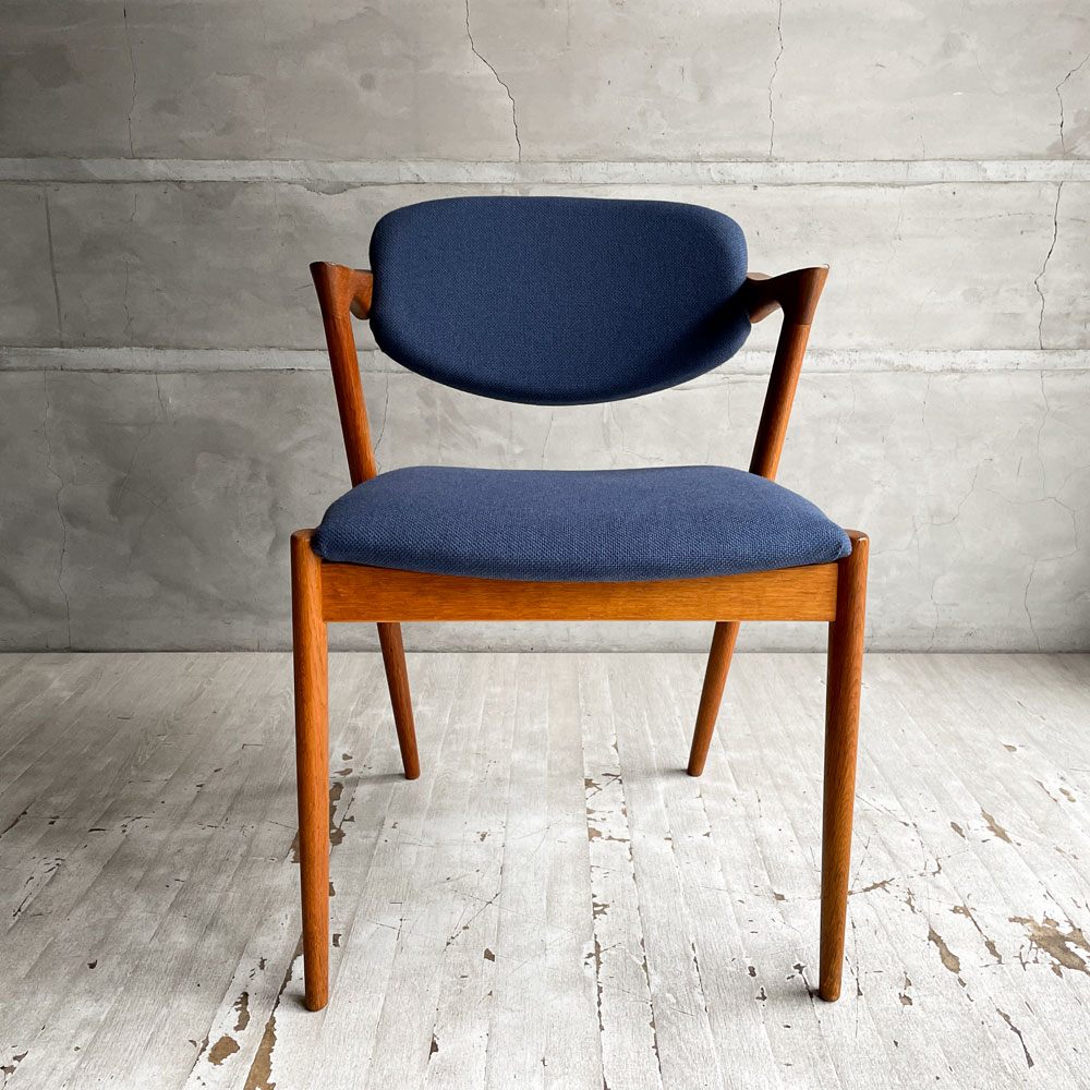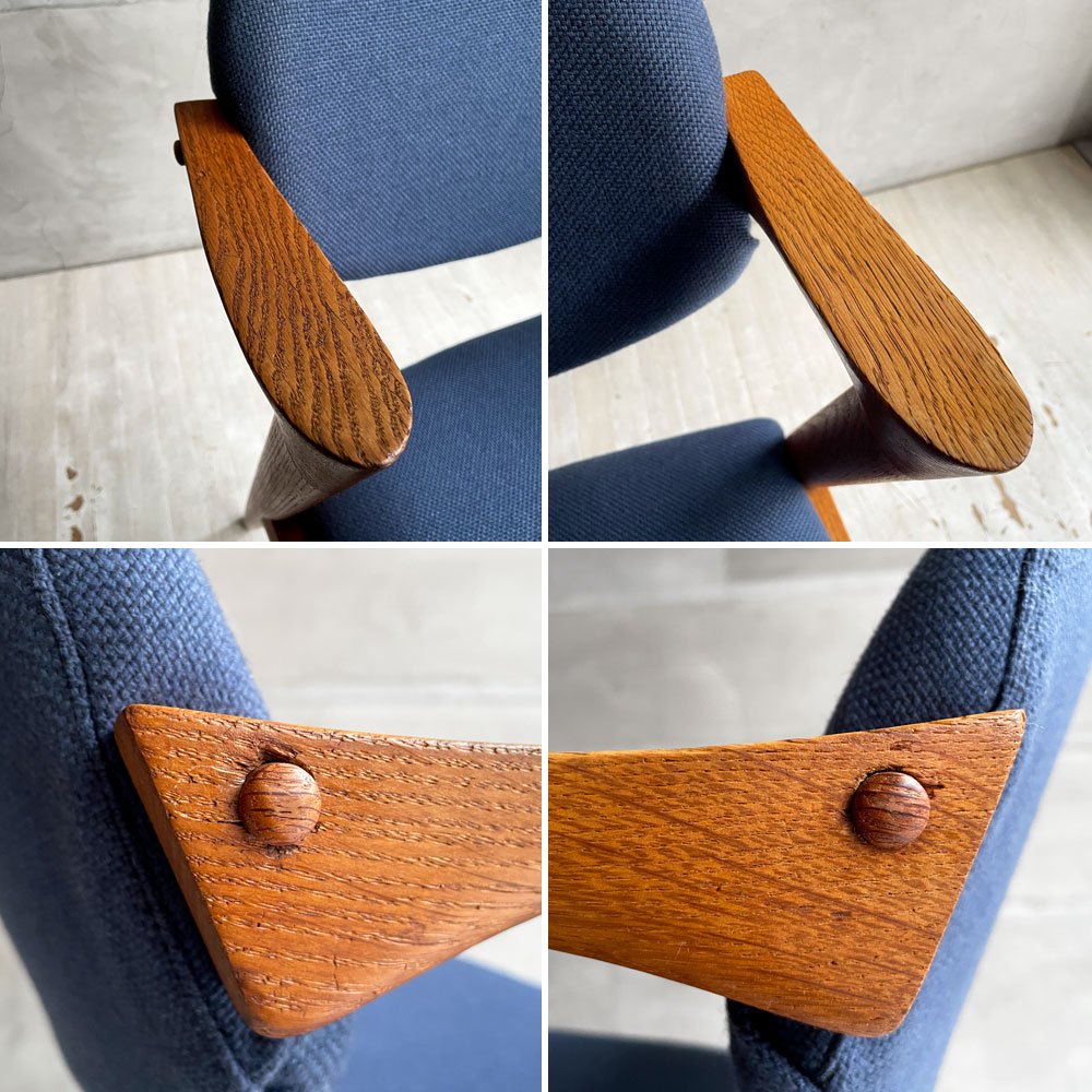 スコウ・アンデルセン Schou Andersen No.42 ダイニングチェア ハーフアーム オーク材 ネイビー ファブリック張替え済み カイ・クリスチャンセン 北欧 デンマークビンテージ ♪