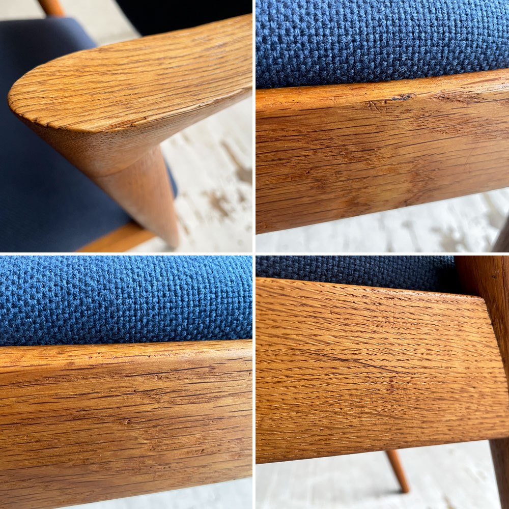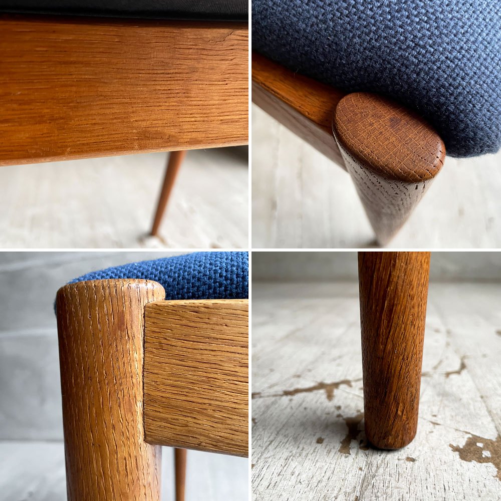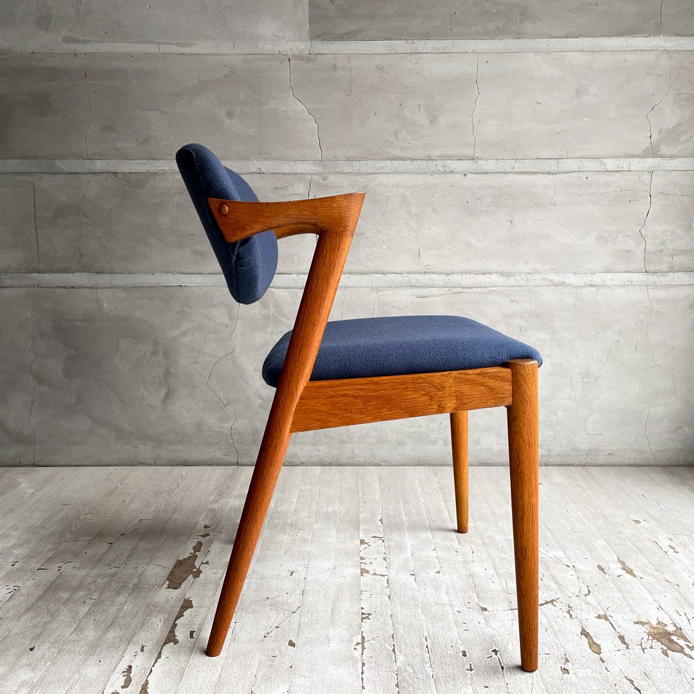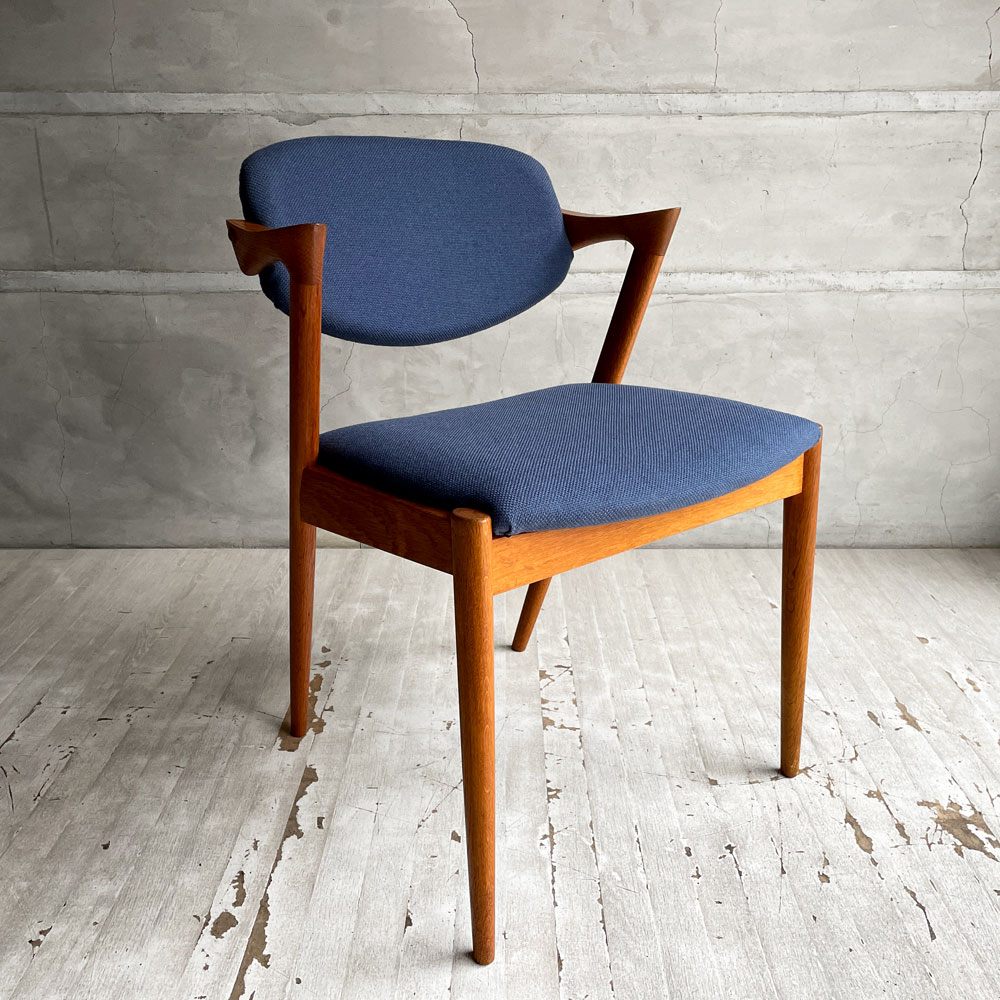 スコウ・アンデルセン Schou Andersen No.42 ダイニングチェア ハーフアーム オーク材 ネイビー ファブリック張替え済み カイ・クリスチャンセン 北欧 デンマークビンテージ ♪