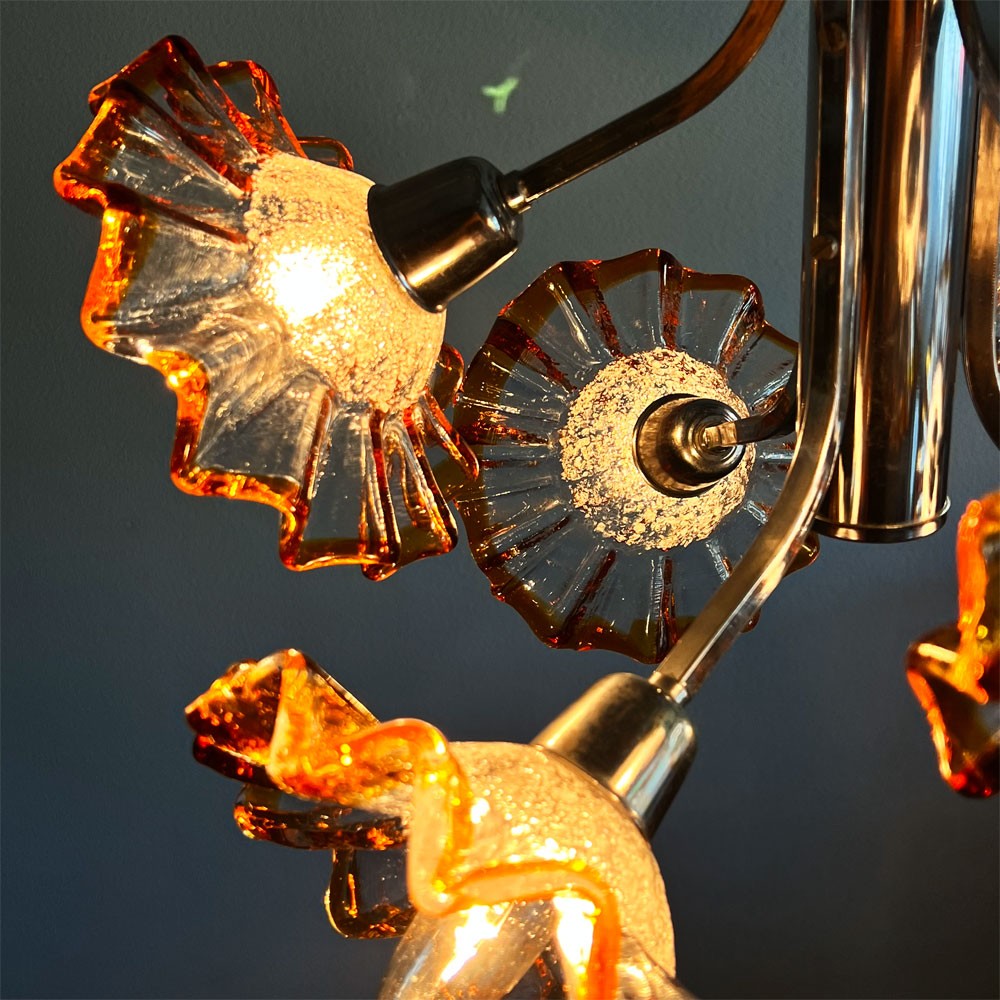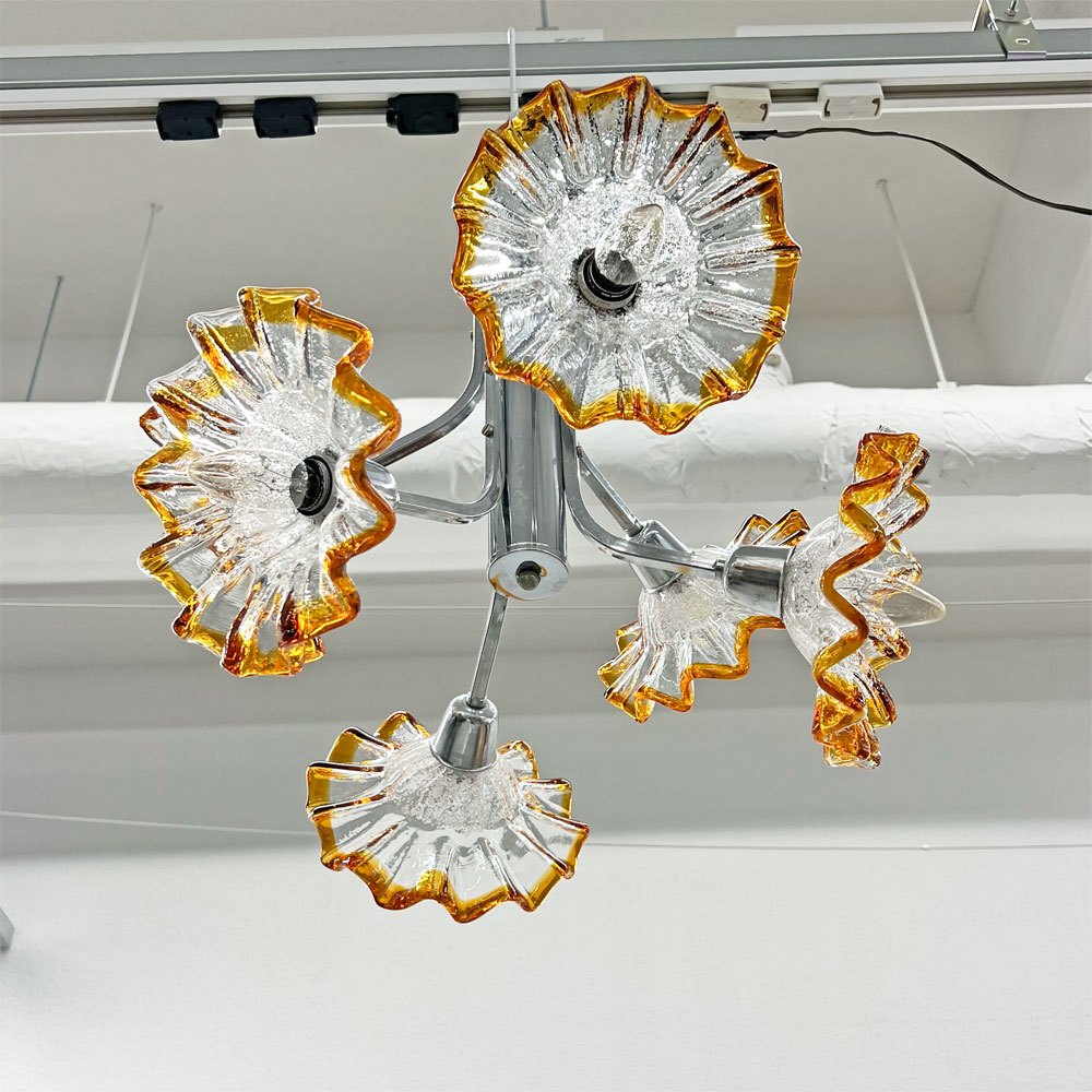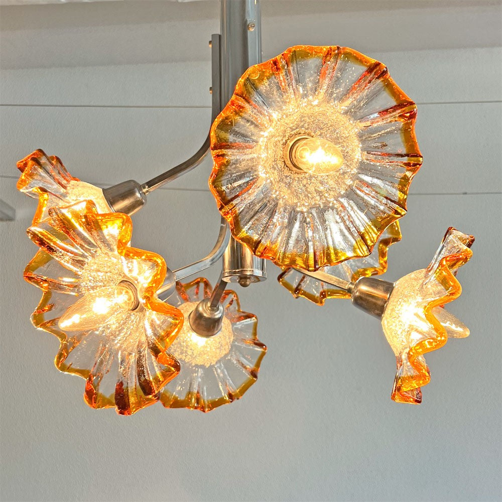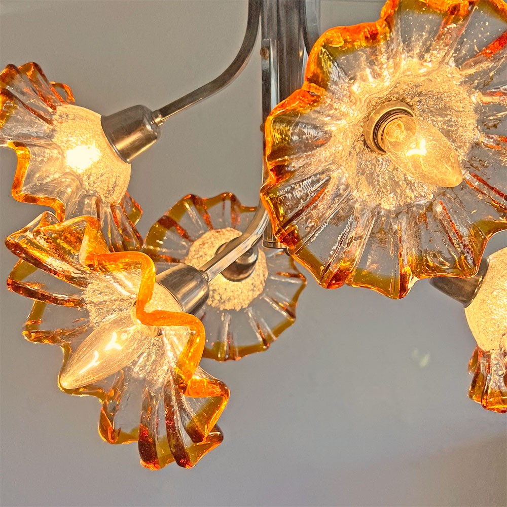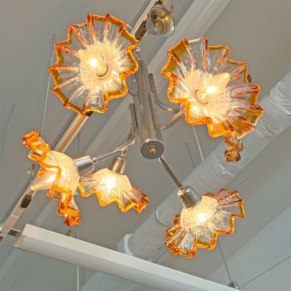 UKビンテージ アンティークフリルガラス6灯ペンダントライト