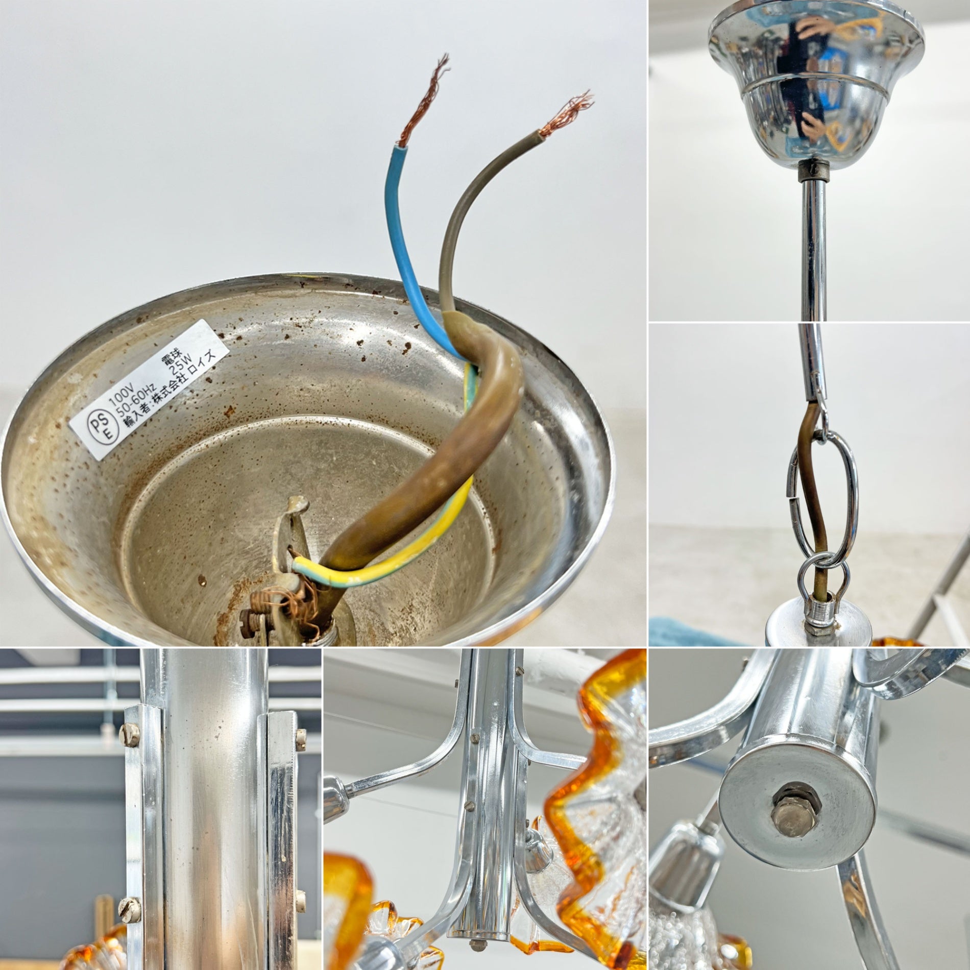使用に伴い、金属部にくすみ落としきれない錆や汚れが見受けられます。また、ひとつガラスシェードにひび割れがございますが、目立つものではなくご使用には問題ございません。その他、点灯に問題は見られず、大きなダメージの見られない、まだまだご使用頂けるコンディションを保っております。