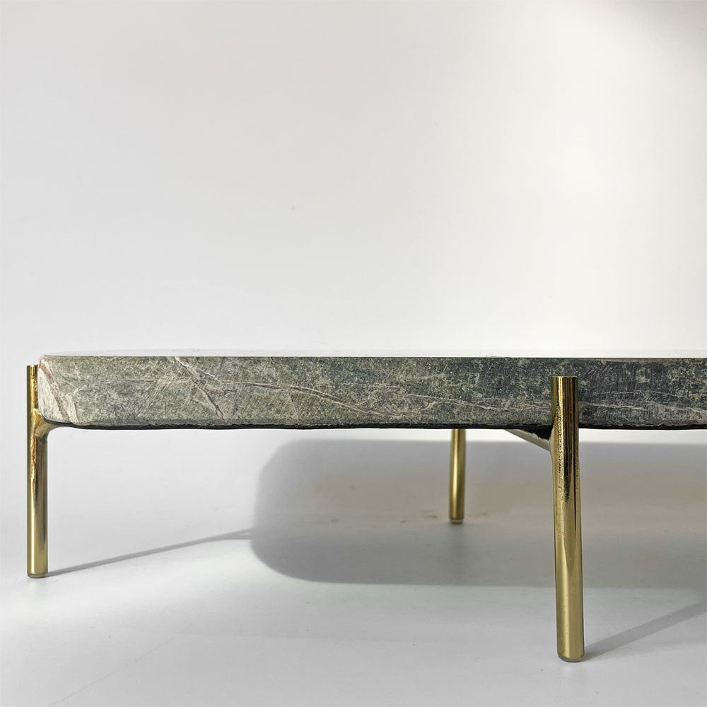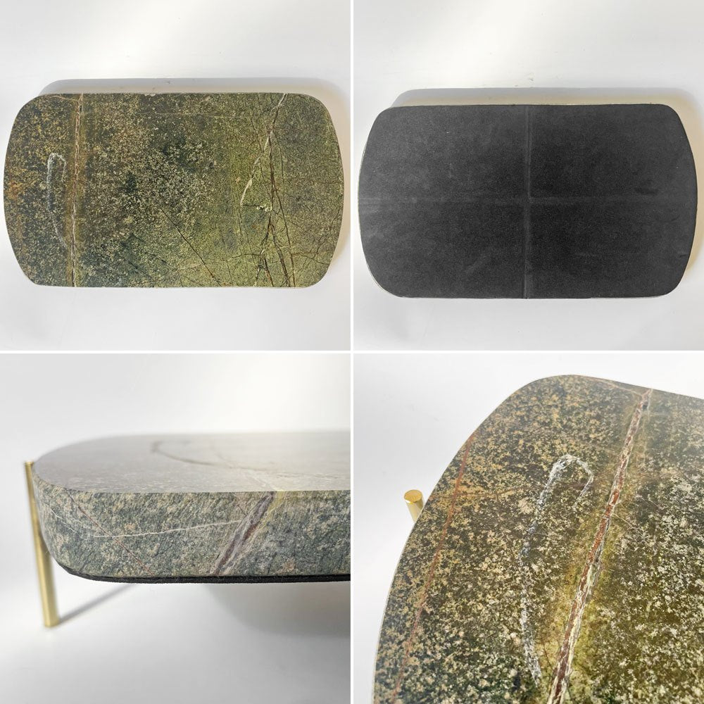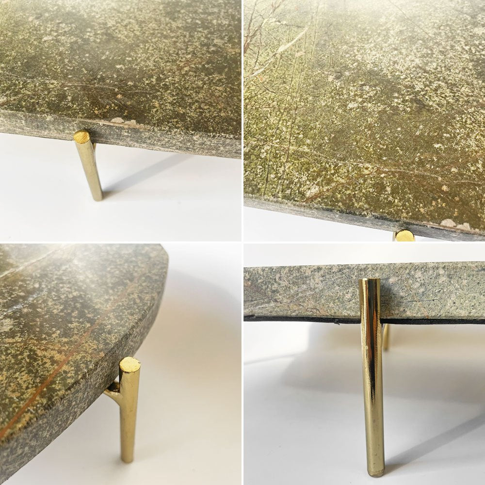 深みのある緑色を帯びた天板と真鍮製の脚部が魅力的。
