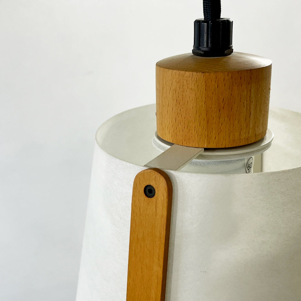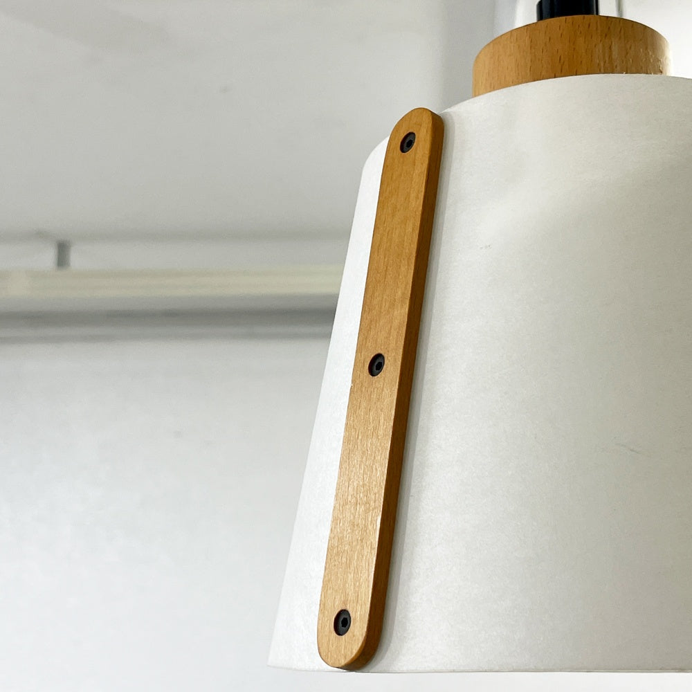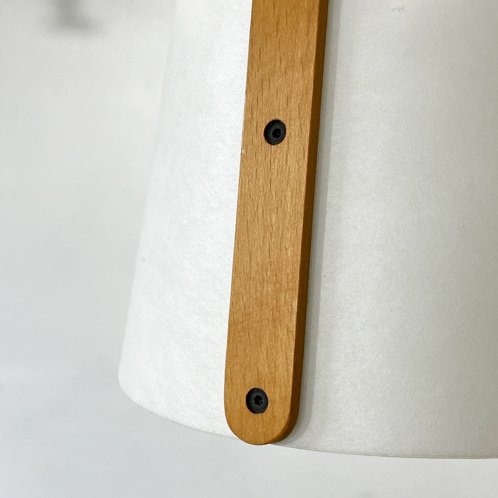 ハリを持たせた筒状のシェードはウッドフレームによって固定。構造によって美観を損なわないデザイン。