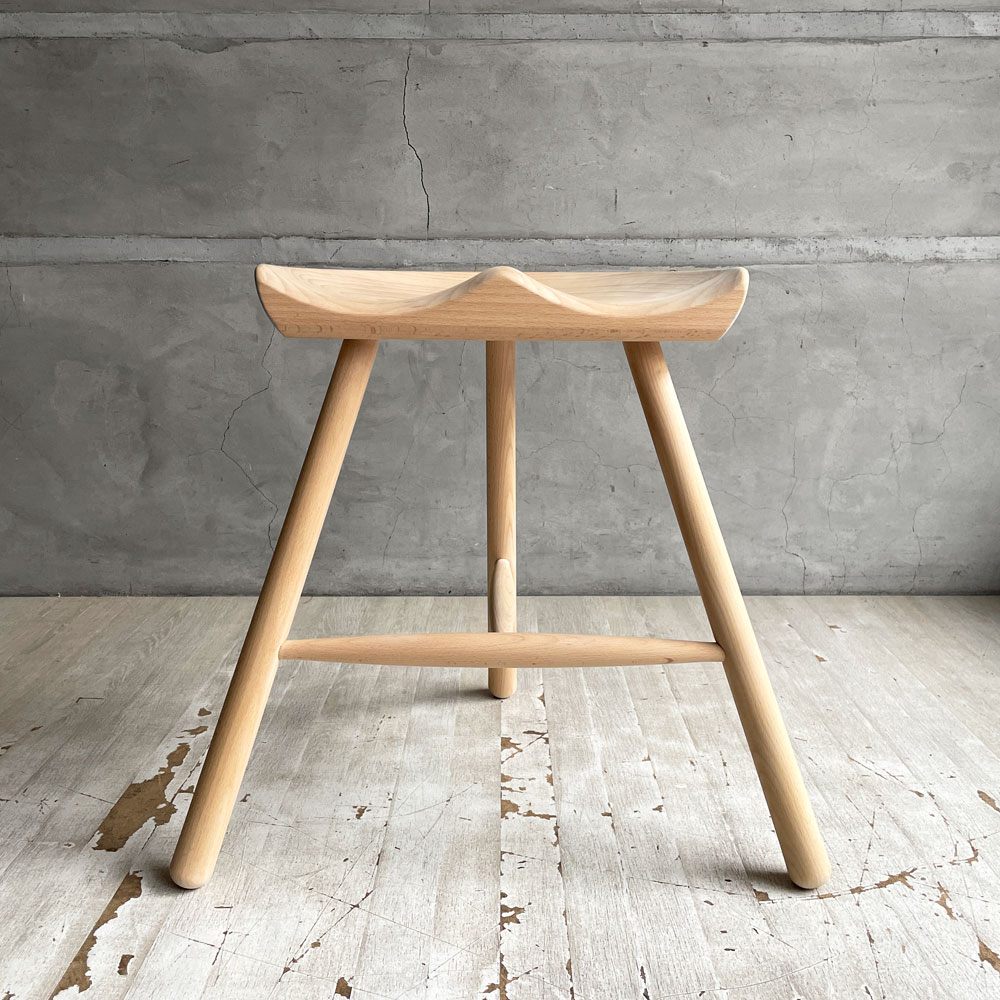 お尻のカタチに沿うように削り出された座面が特徴的な、その名もSHOEMAKER(シューメーカー)スツール。