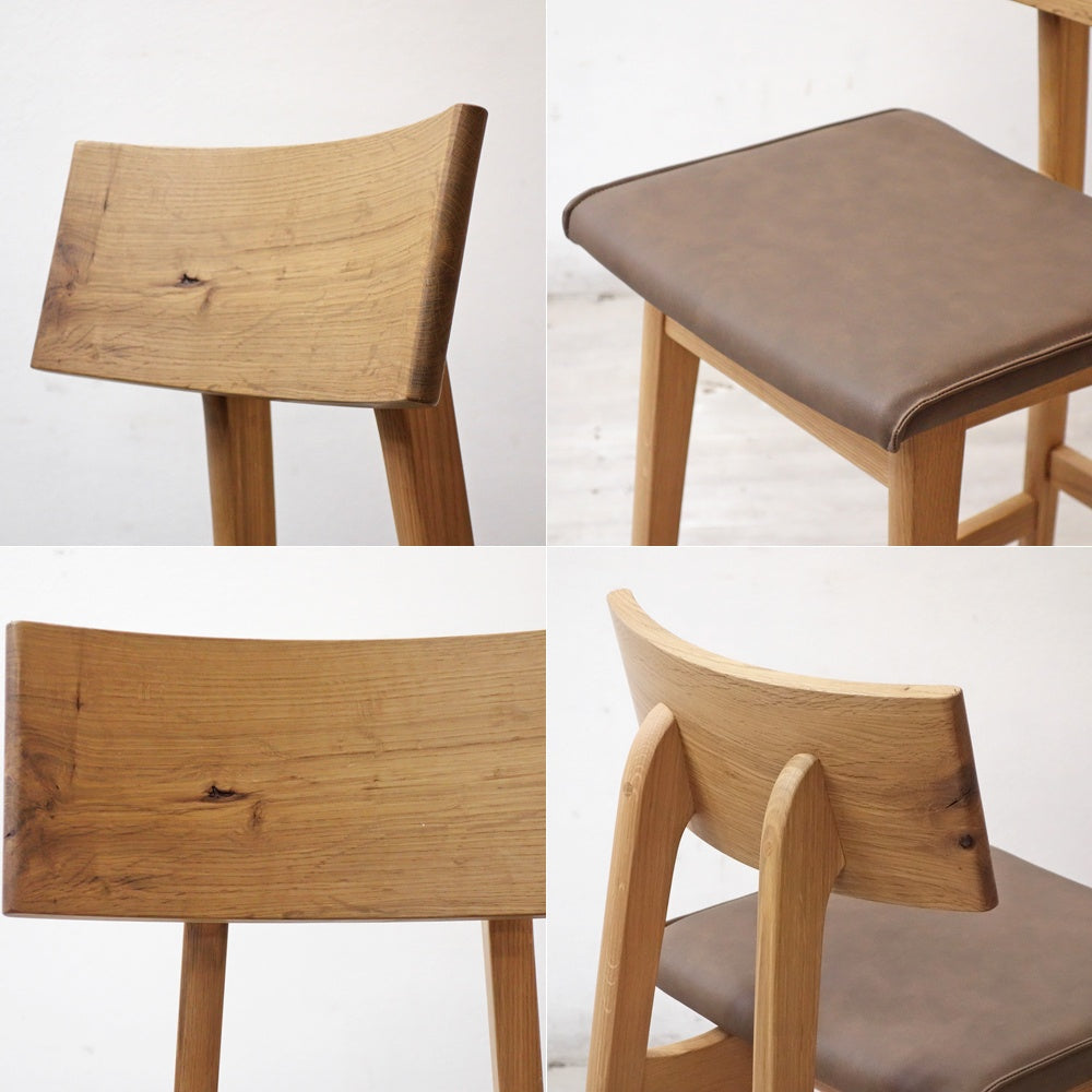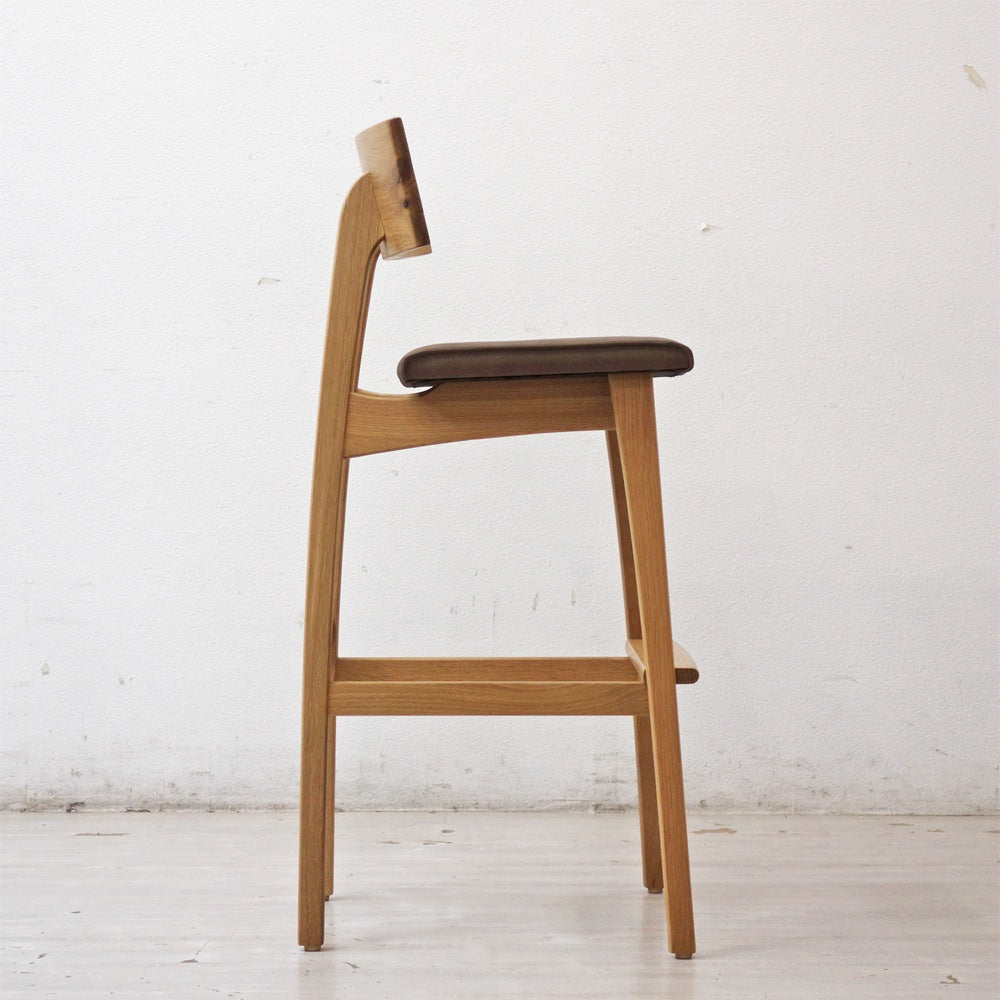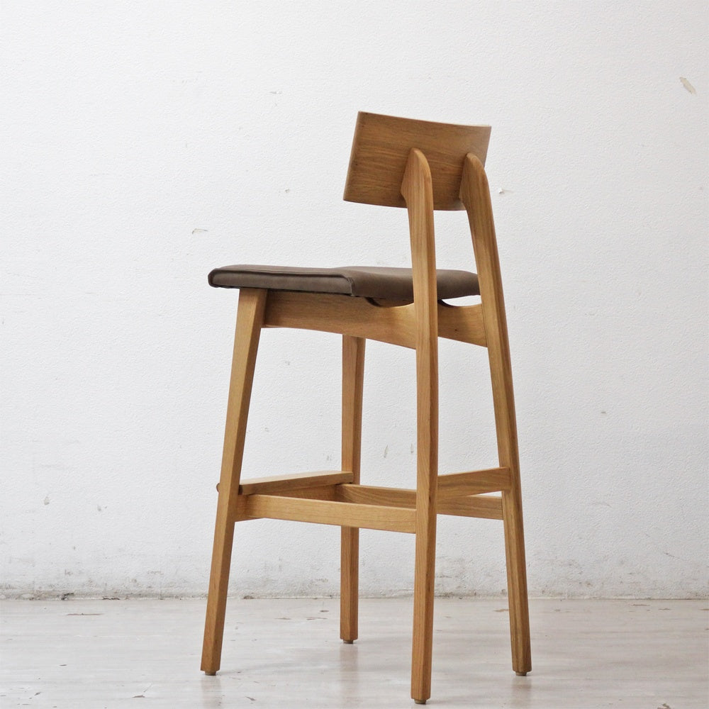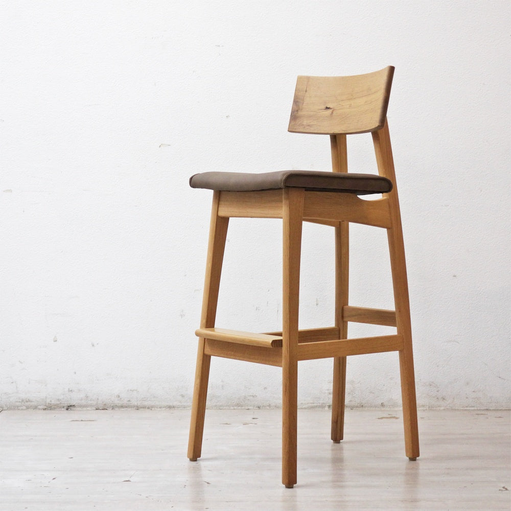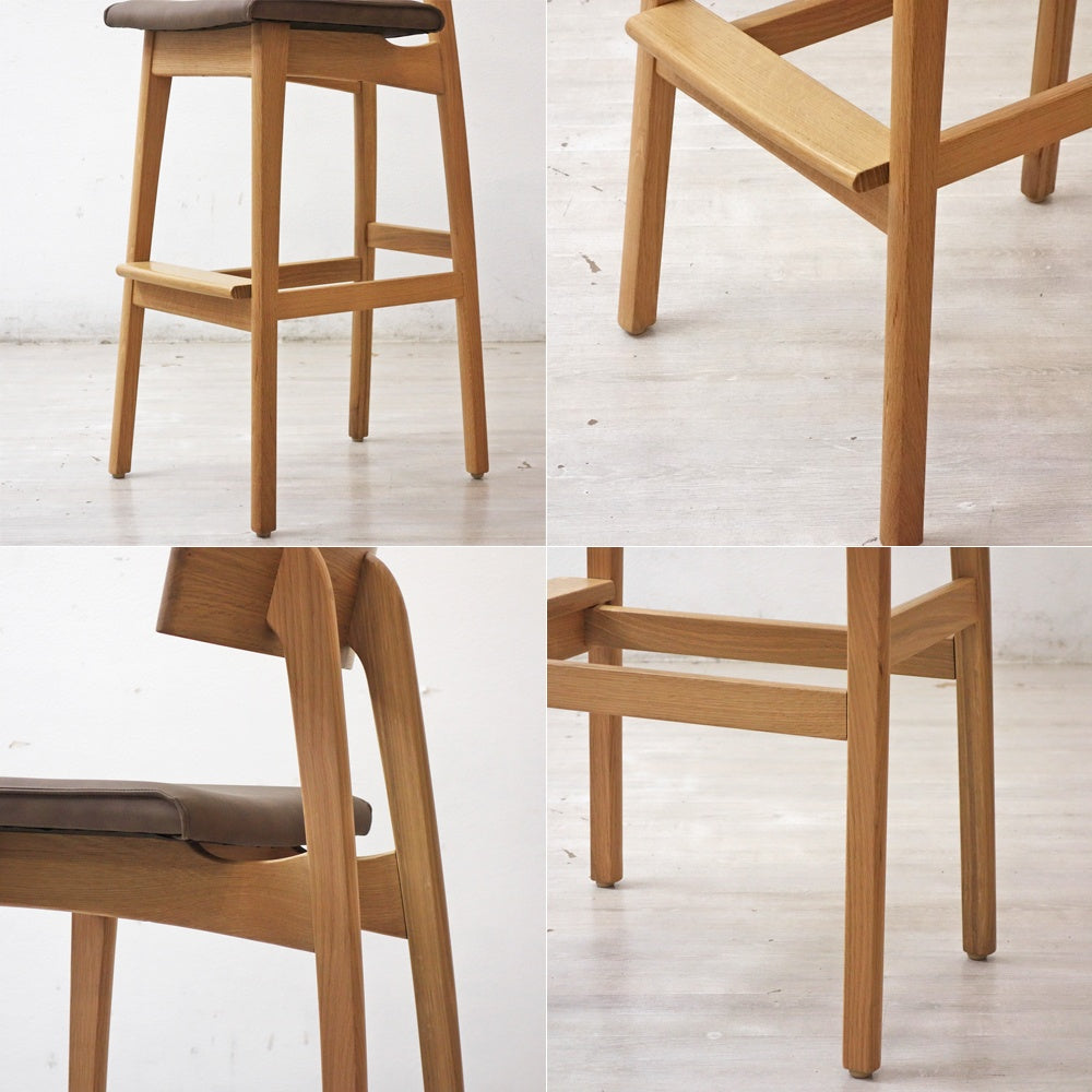 中でもホワイトオークはやや白見を帯びた木肌で、品格溢れる佇まい。 熟練の職人が一つ一つ丹精込めて作り上げたフレームの造形はなんとも心地よい曲線とスッキリとした直線を見事に表現しており、匠の業によって組み上げられた接合面の精度の高さも申し分なく、カウンターチェアとして空間に上質なアクセントを添えながら、抜群の安定感と座り心地の良さをも叶えてくれる一脚となっております。