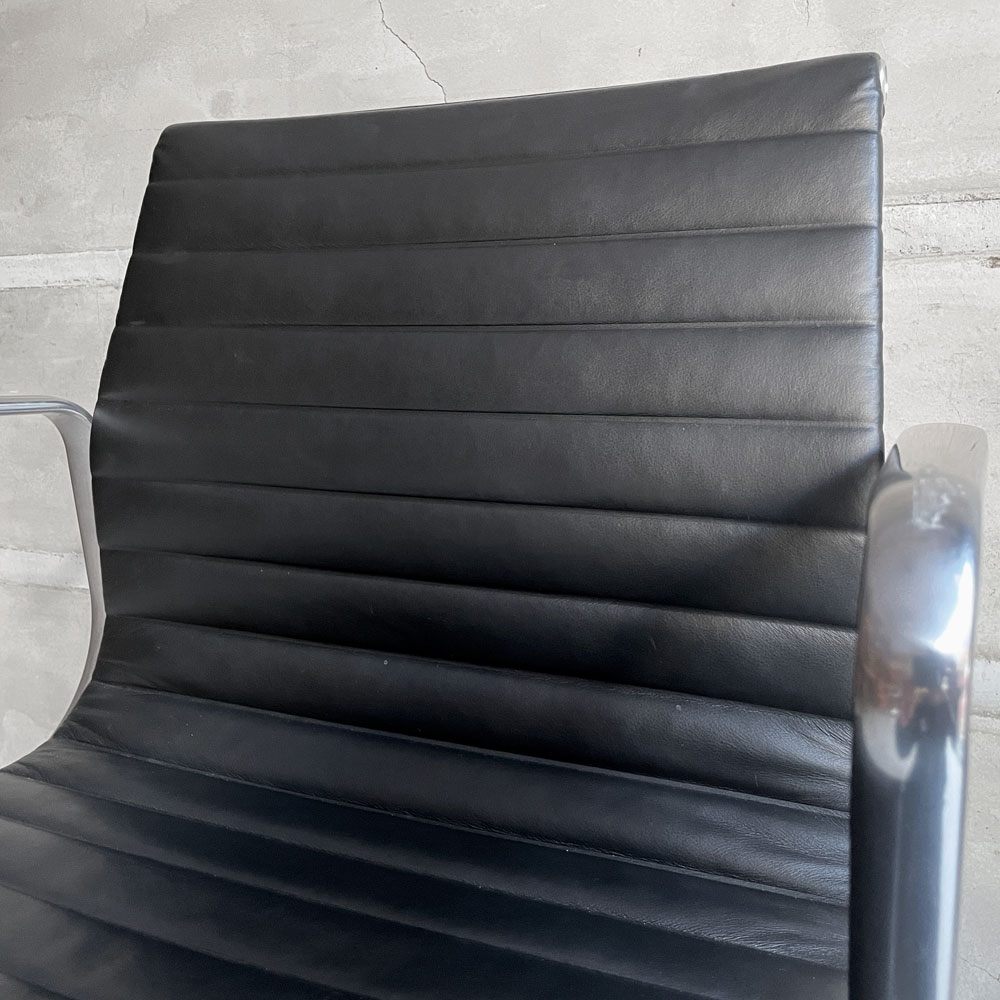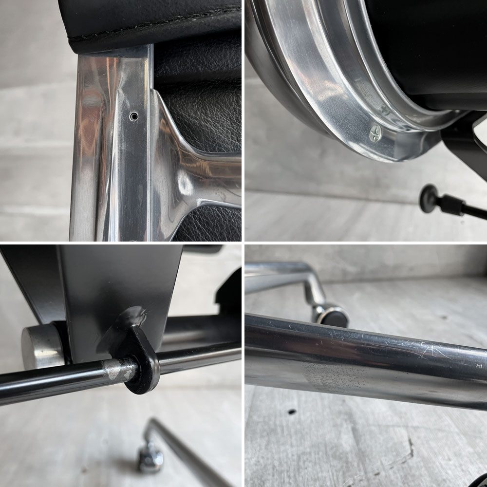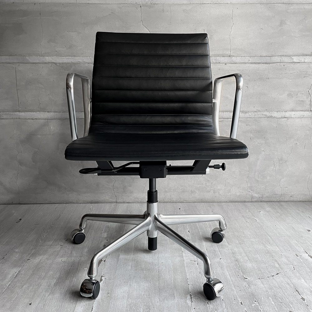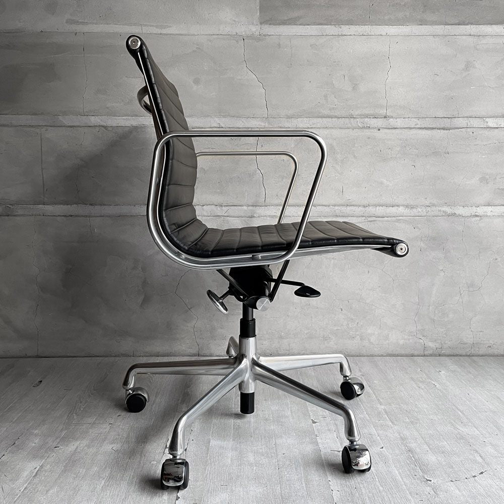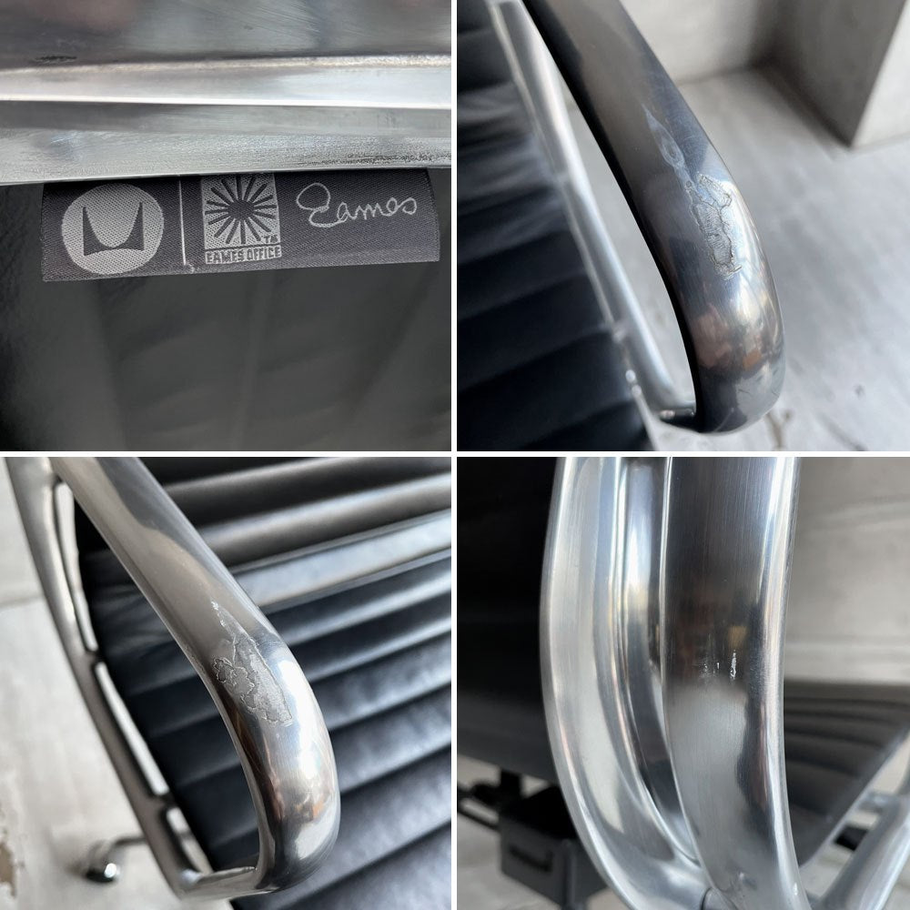 ハーマンミラー Herman Miller イームズアルミナムグループ マネジメントチェア アルミバフベース ガス圧昇降 5本脚キャスター 本革 レザー ブラック B ♪
