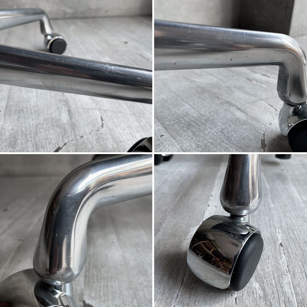 アーム及びフレームの傷や擦れ、素材特有のくすみやなどがございます。また、レザーシートに僅かな擦れや僅かな汚れなどがございます。その他、各所可動部もスムーズに動作し、機能やご使用に問題のある箇所などもございません。これからも安心してお使い頂けるお品物となっております。