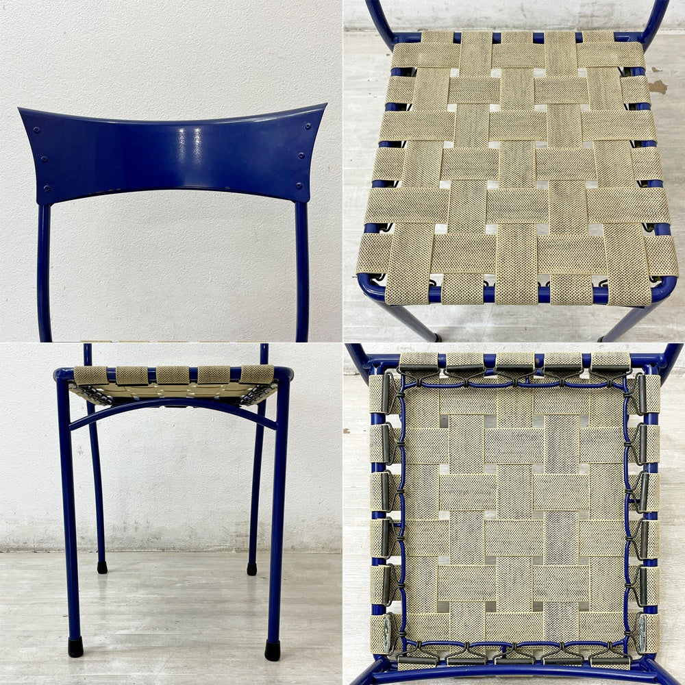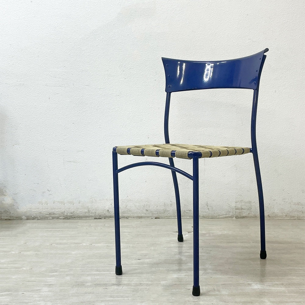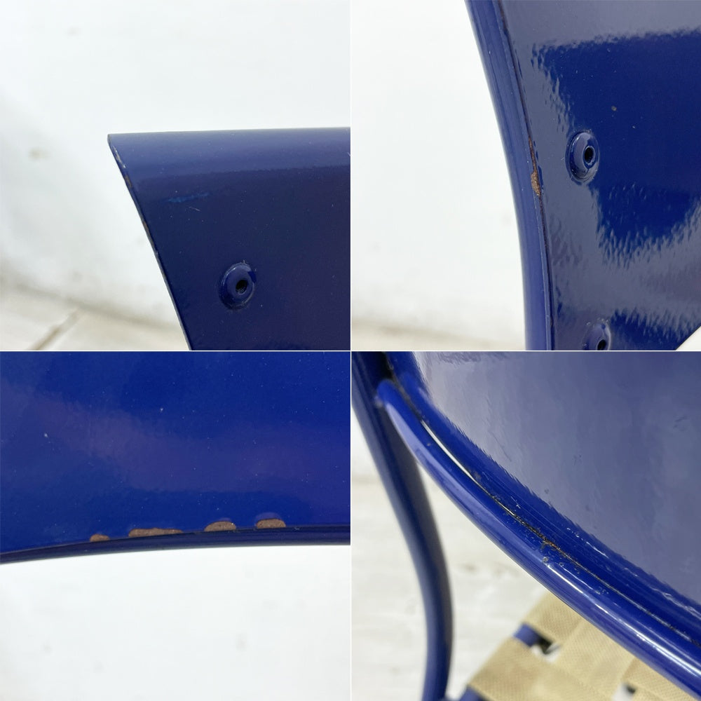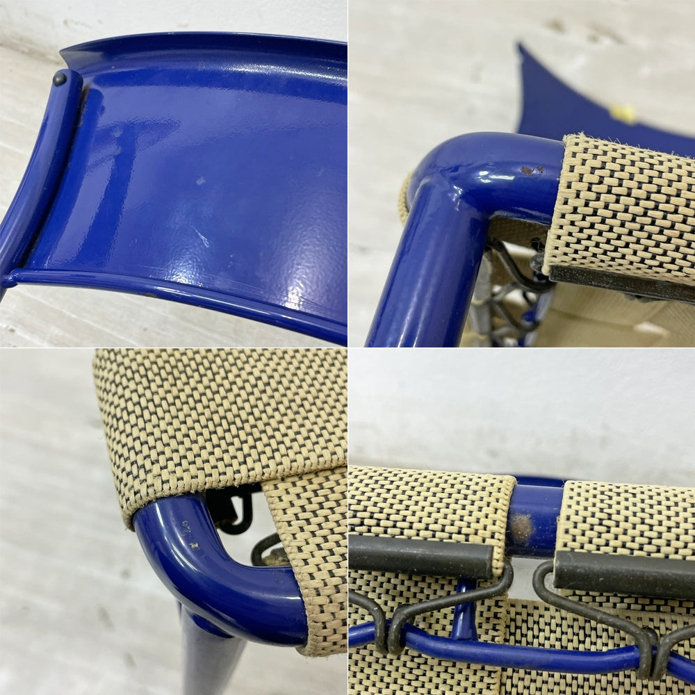 アルテラーノ ARTELANO ビンテージ スチールフレームチェア ウェービングテープ張り座面 スタッキングチェア ブルー フランス A ●