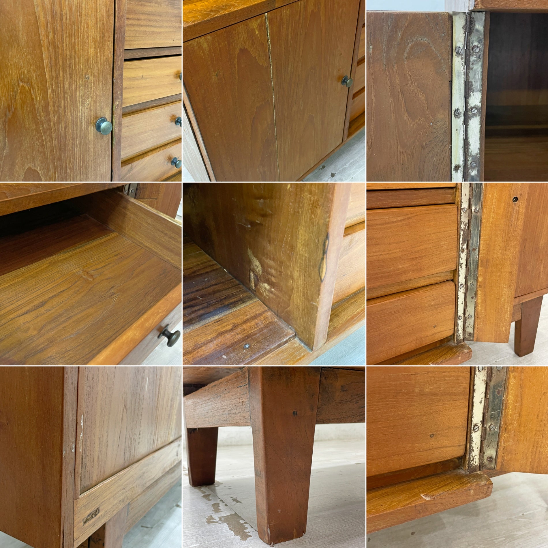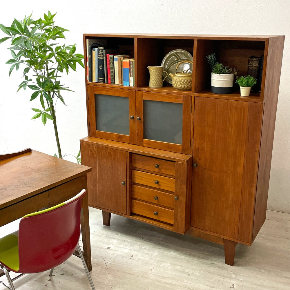 チーク無垢材を贅沢に使用した見せる&隠すを両立したキャビネットが入荷致しました。