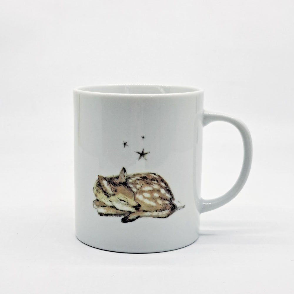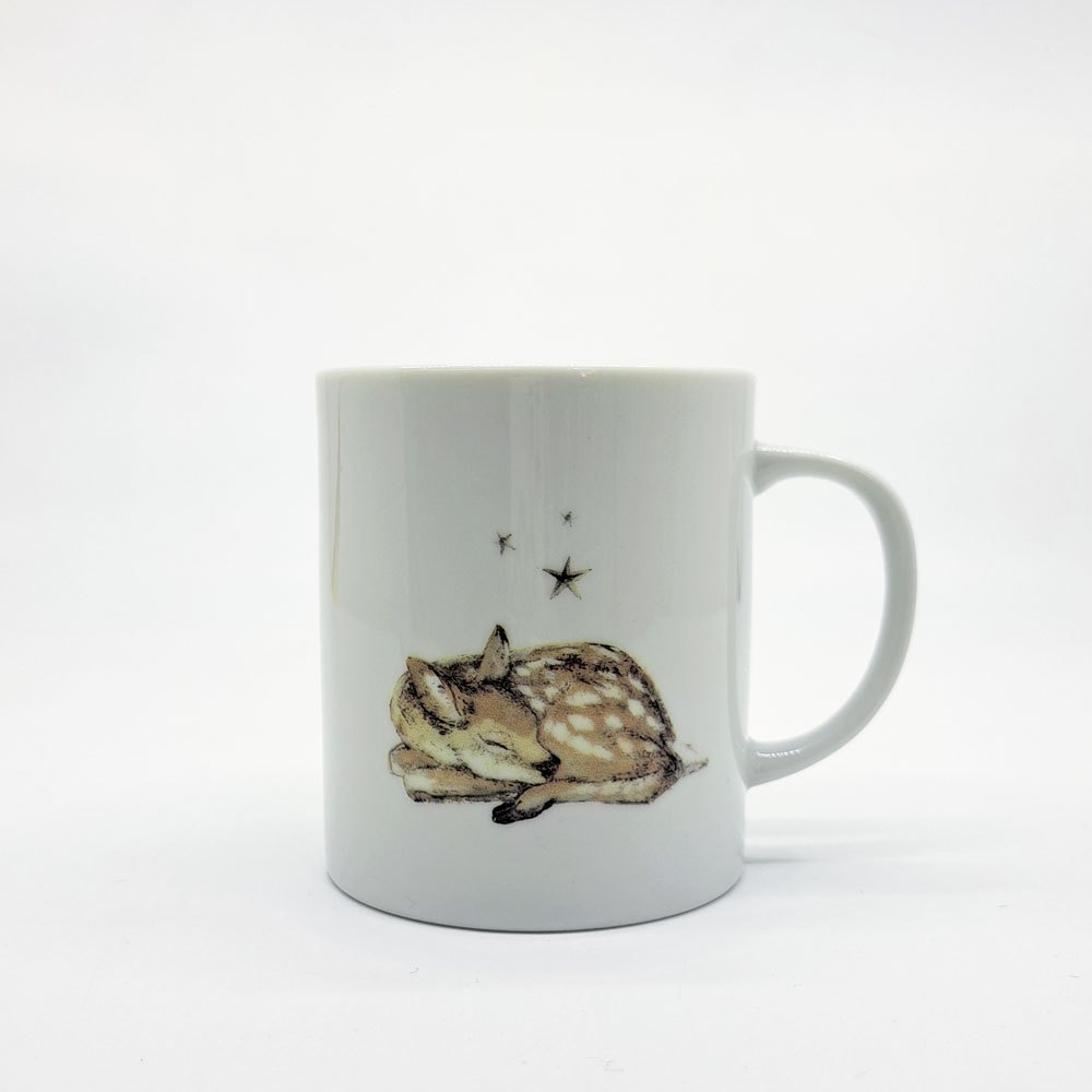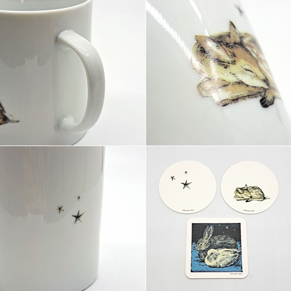 マグカップには、絵本作家である酒井駒子の "夜は、待っている。" の作中で描かれたイラストがあしらわれ、白地の中で眠りにつく鹿と星がシンプルな対比を見せながら、穏やかな世界観を演出。
