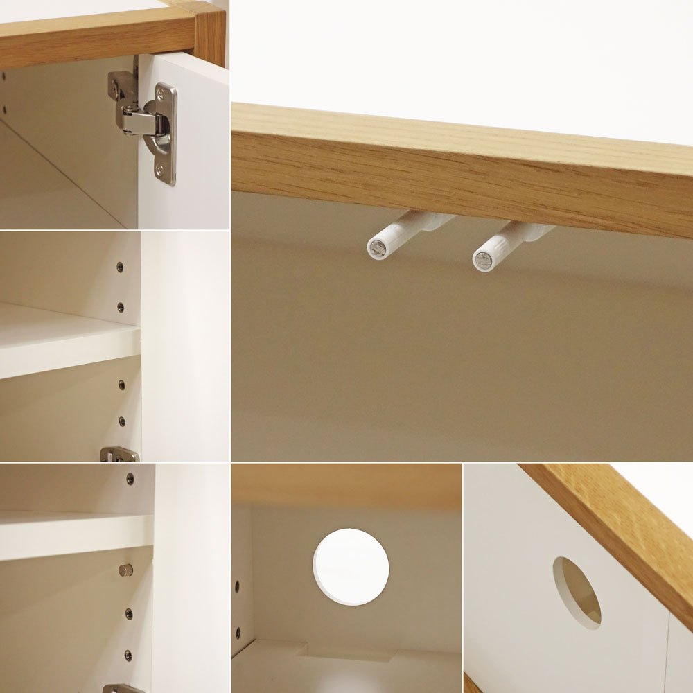 扉収納には棚板、配線孔が設けられていますのでTVボードの様な使い方にも対応しています。