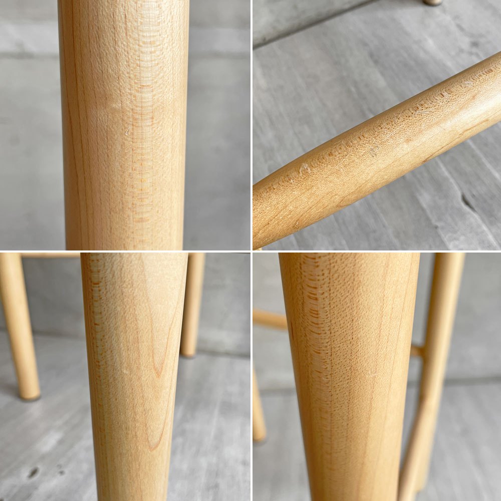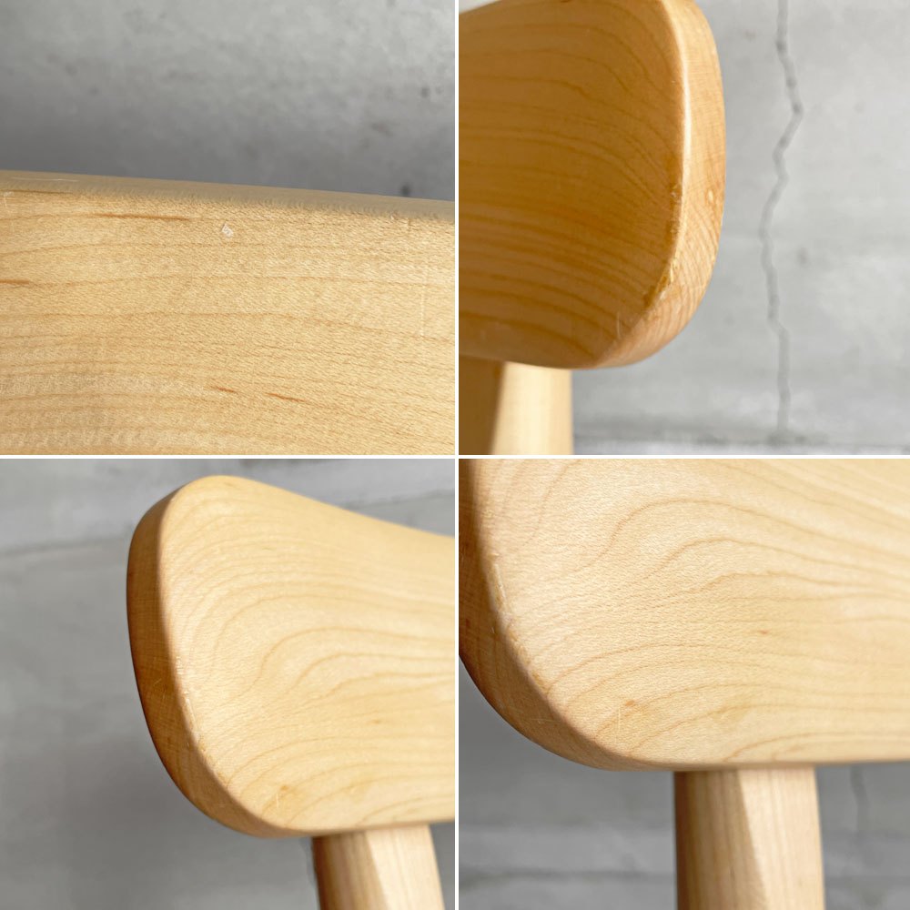材木にはメープル材を使用。マルニ木工ならではの高度な木工技術により、軽さと強度を絶妙なバランスで兼ね備えており、各パーツのディティールにも一切妥協が見られず、繊細なデザインと造りへの拘りが感じられます。