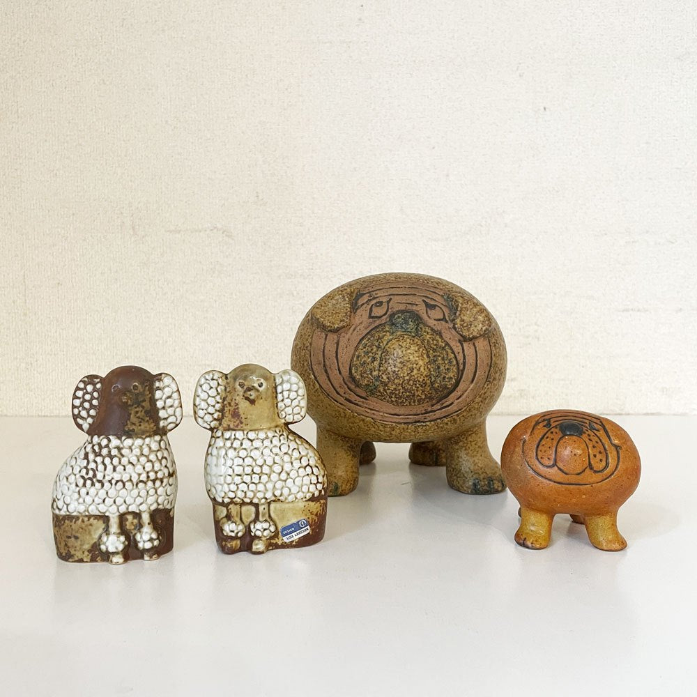 リサのブルドッグデザインは全部で5匹。大きな動物園(Stora zoo)シリーズで生まれた最初のブルドッグの生産が終了したのちに犬小屋シリーズの一環として3種が誕生。その後KERAMIK STUDION GUSTAVSBERG(ケラミックスタジオグスタフスベリ)からも1種が生まれています。