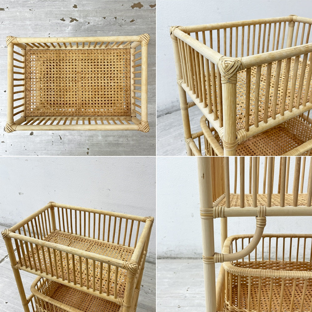 ツルヤ商店 ラタン × バンブー 2段ラック ランドリーバスケット 藤 洗濯物入れ かご 脱衣カゴ 自然素材 手編み ●