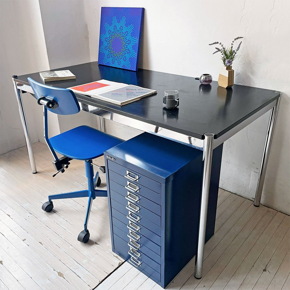 鮮やかなブルー色は、無機質になりがちなデスク周りのアクセントとしても空間を明るく演出します。