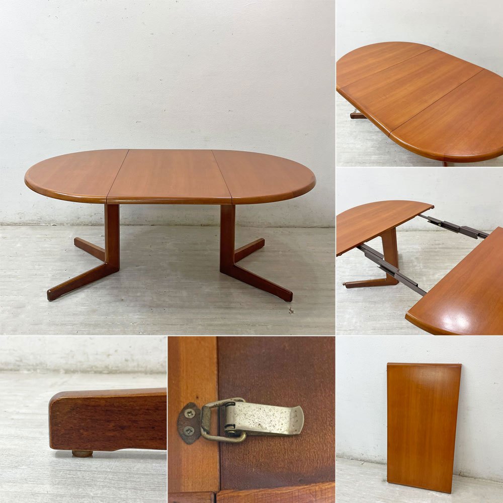 CJ ROSENGAARDEN エクステンション ダイニングテーブル ラウンド チーク材 W110~168.5cm 伸長式 アジャスター デンマークビンテージ 北欧家具 ●
