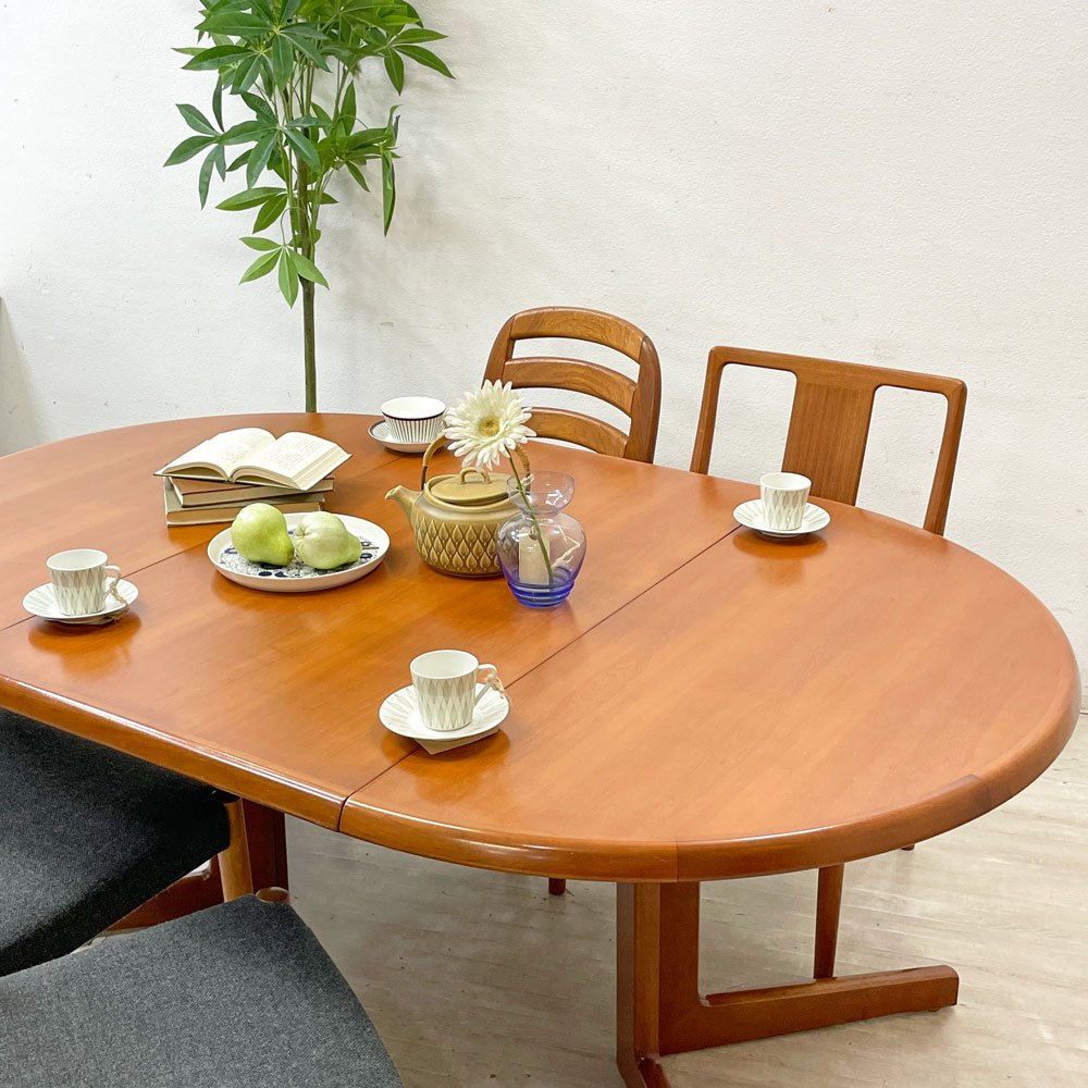 こちらは同社が製造を手掛けたチーク材のエクステンションダイニングテーブル。