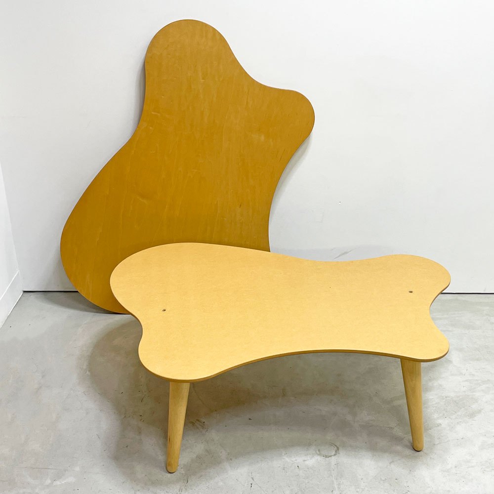 こちらは同社が手掛けた、柔らかな曲線が印象的な『たまり』こたつテーブルになります。