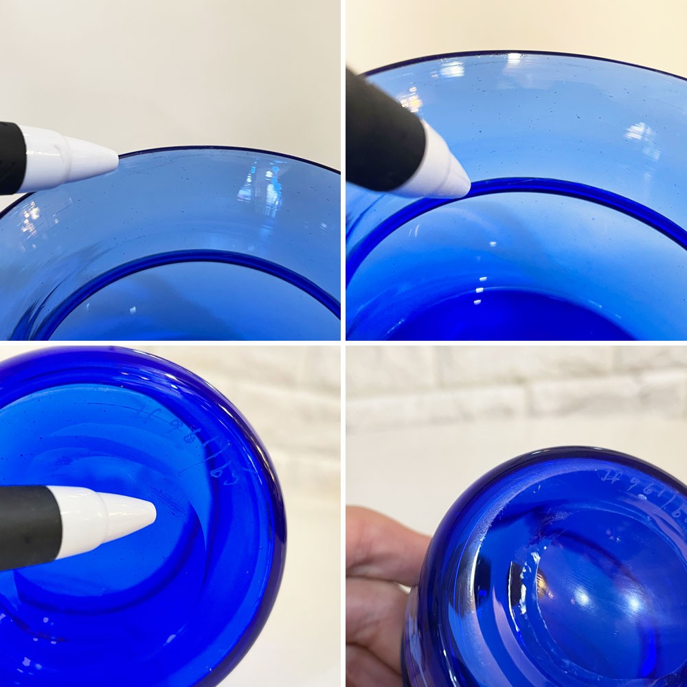 こちらはビンテージのお品物となります。使用・経年に伴い、僅かなくすみや傷、内部には微細な傷、裏面にやや目立つ傷が見受けられますが、味としてお楽しみください。 また、製造時に出来たと思われる、くすみや気泡、揺らぎが見受けられます。ハンドメイドによる作品の為、若干形状の歪みがございますが、ご了承くださいませ。その他、割れや欠けなど使用や美観を損なう大きなダメージの見られず、これからも安心してご使用いただけるコンディションを保っております。