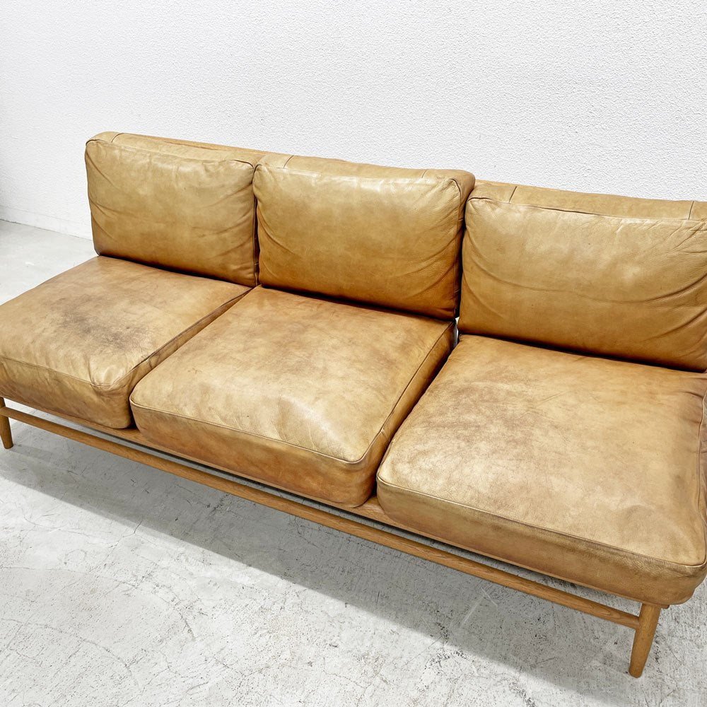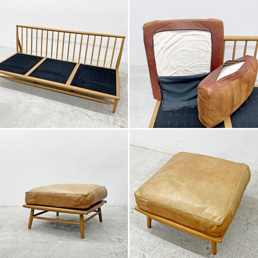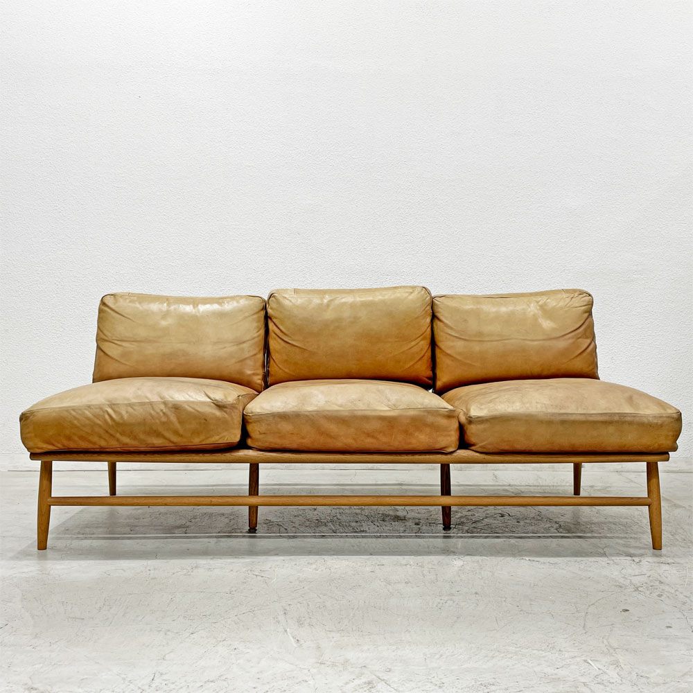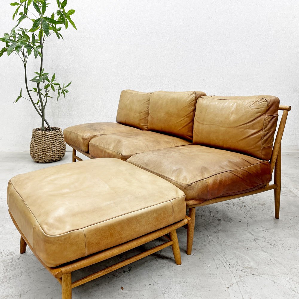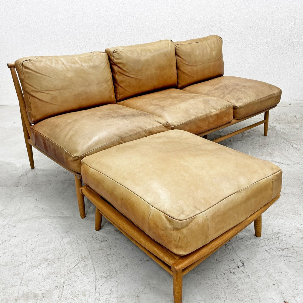 モモナチュラル Momo Natural クラウド CLOUD 3Pソファ 3人掛け & オットマン レザーシート 本革 オーク無垢材 フェザー×ウレタンクッション ~ 共に歳を取る家具~