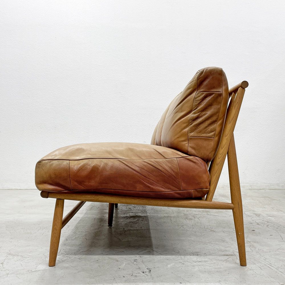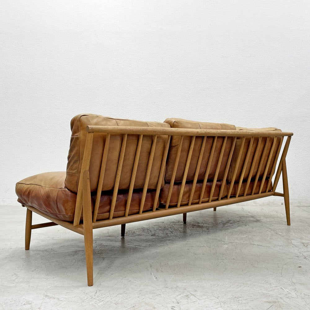 軽やかなフォルムが特徴的で、フレームにオーク無垢材を使用したスポークバックタイプのソファ。