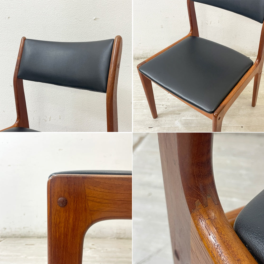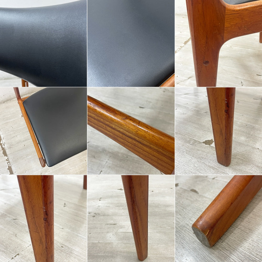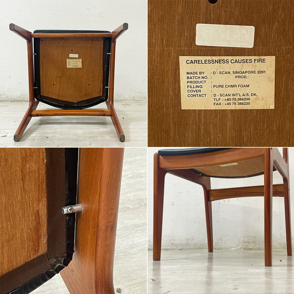 ディースキャン D-SCAN チーク材 ダイニングチェア アームレス レザー デンマークビンテージ 北欧 A ●
