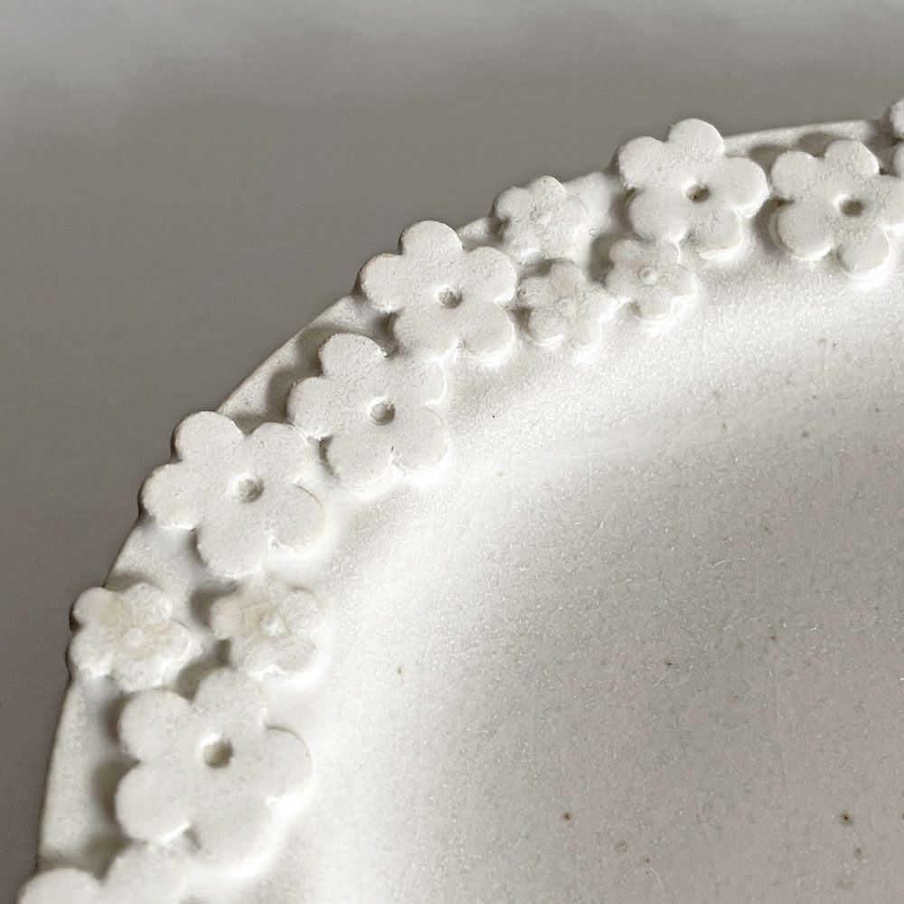 同氏の作品最大の特徴の小花がプレートの縁に彩られ、可愛らしい仕上がりに。