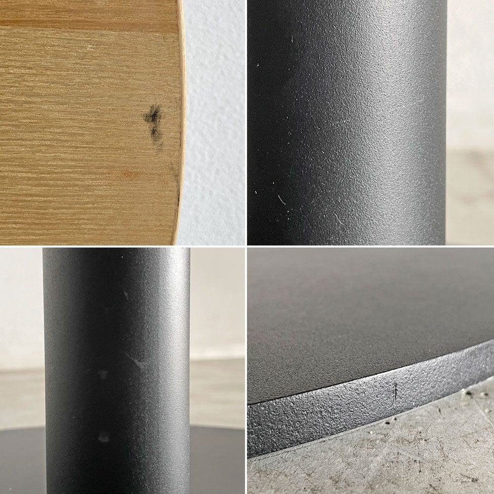 木部には擦れや傷、打痕、薄っすらとした天板の日焼け痕、黒ずみなどの取り切れない汚れ等が見受けられます。またスチール部分にはスクラッチ傷やくすみ汚れなどがございますが、ご使用に問題となるダメージはございません。今後も気持ちよく実用いただけるコンディションを保っております。