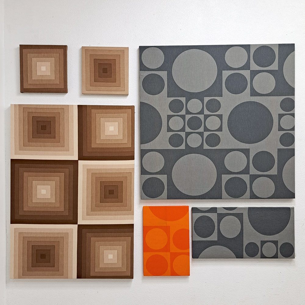 ヴェルナー・パントン Verner Panton ミラ エックス MIRA-X Mira-Spectrum スクエア SQUARE 103×73cm ブラウン系 コットン ビンテージ ファブリックパネル 希少 ●